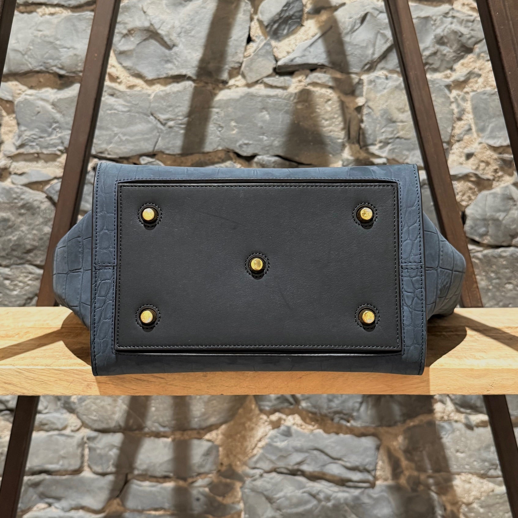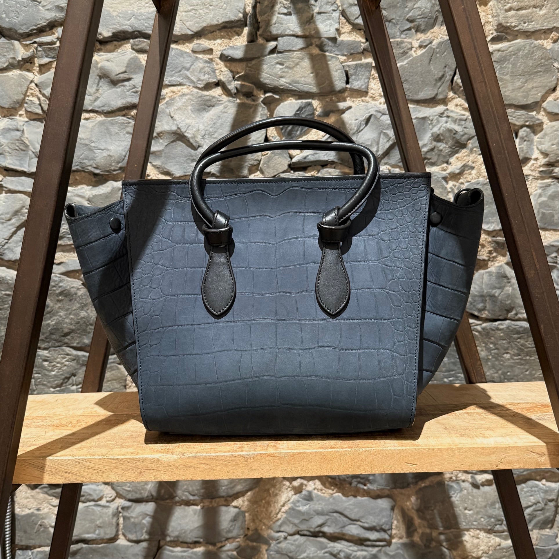 Céline Midnight Blue Croc Embossed Nubuck Small Tie Knot Tote Bag