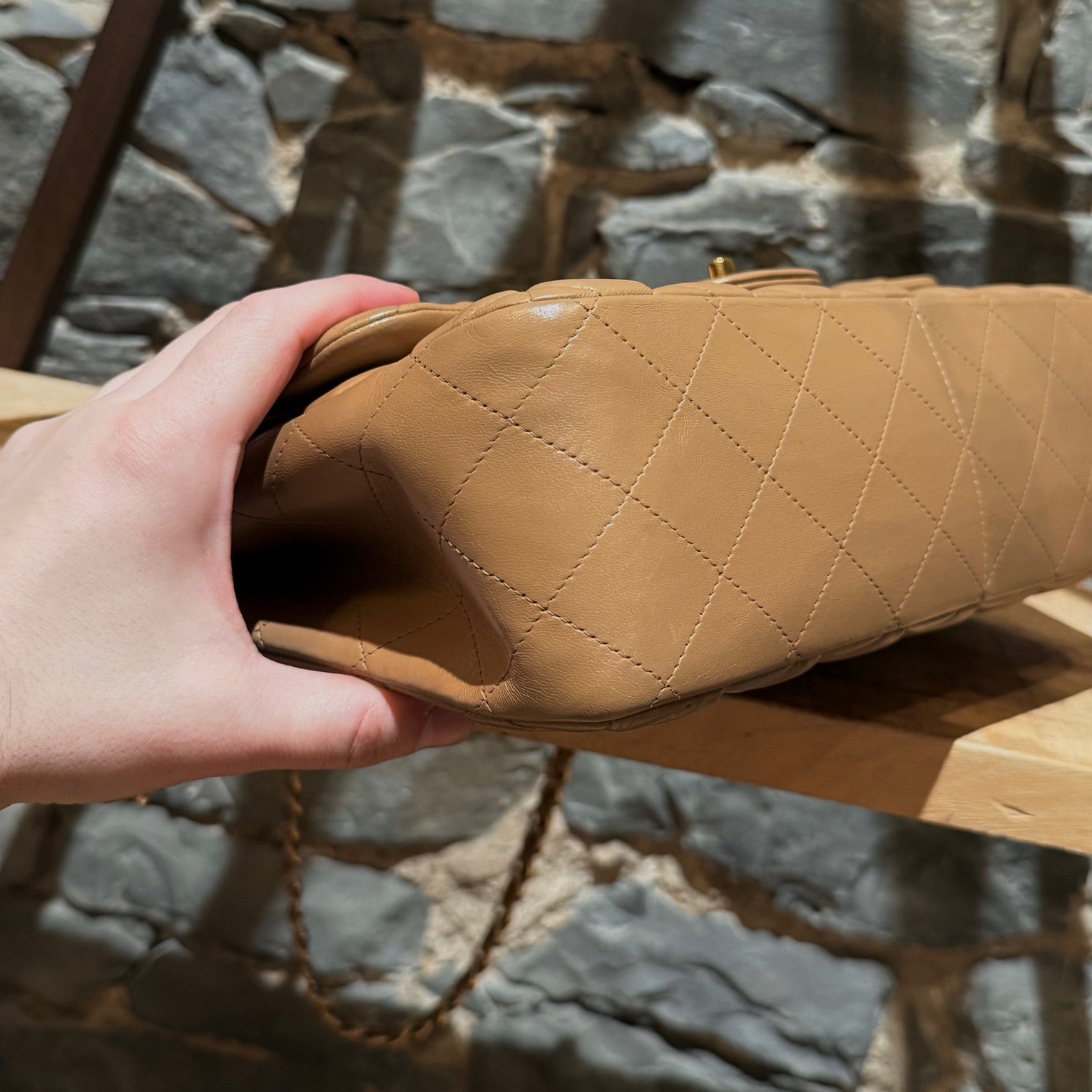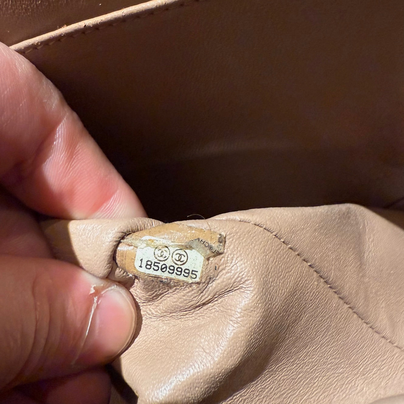 CONDITION: Pre-owned, in good condition. Light signs of wear consistent with gentle use. This bag seems to have been fully repainted, which can affect the original feel and longevity of the leather. Light creasing on the exterior lambskin leather. Light scuffs and tarnish are present on the gold-tone hardware. The leather interwoven through the chain strap shows some wear. Interior shows minor visible marks. Please refer to the pictures and measurements. Feel free to inquire for additional information prior to purchase.