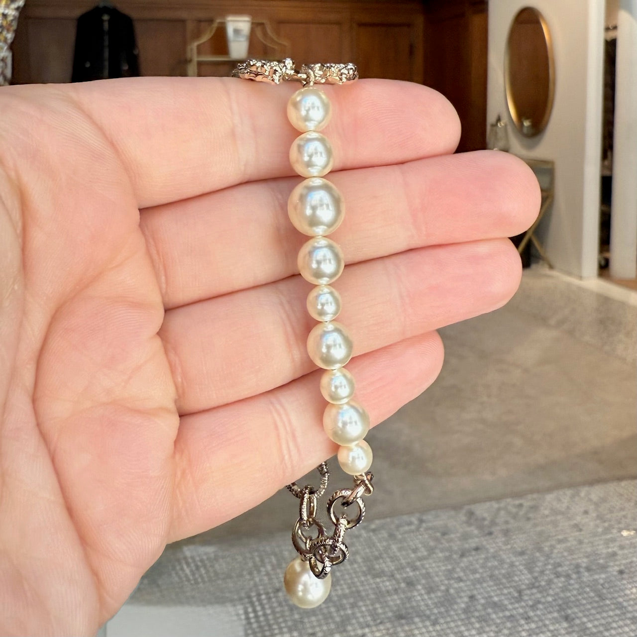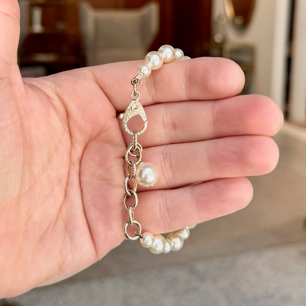 CONDITION: Pre-owned, in very good condition. Minimal signs of wear consistent with gentle use. No chipping at pearls - no imperfections notice. Please refer to the pictures and measurements. Feel free to inquire for additional information prior to purchase.
