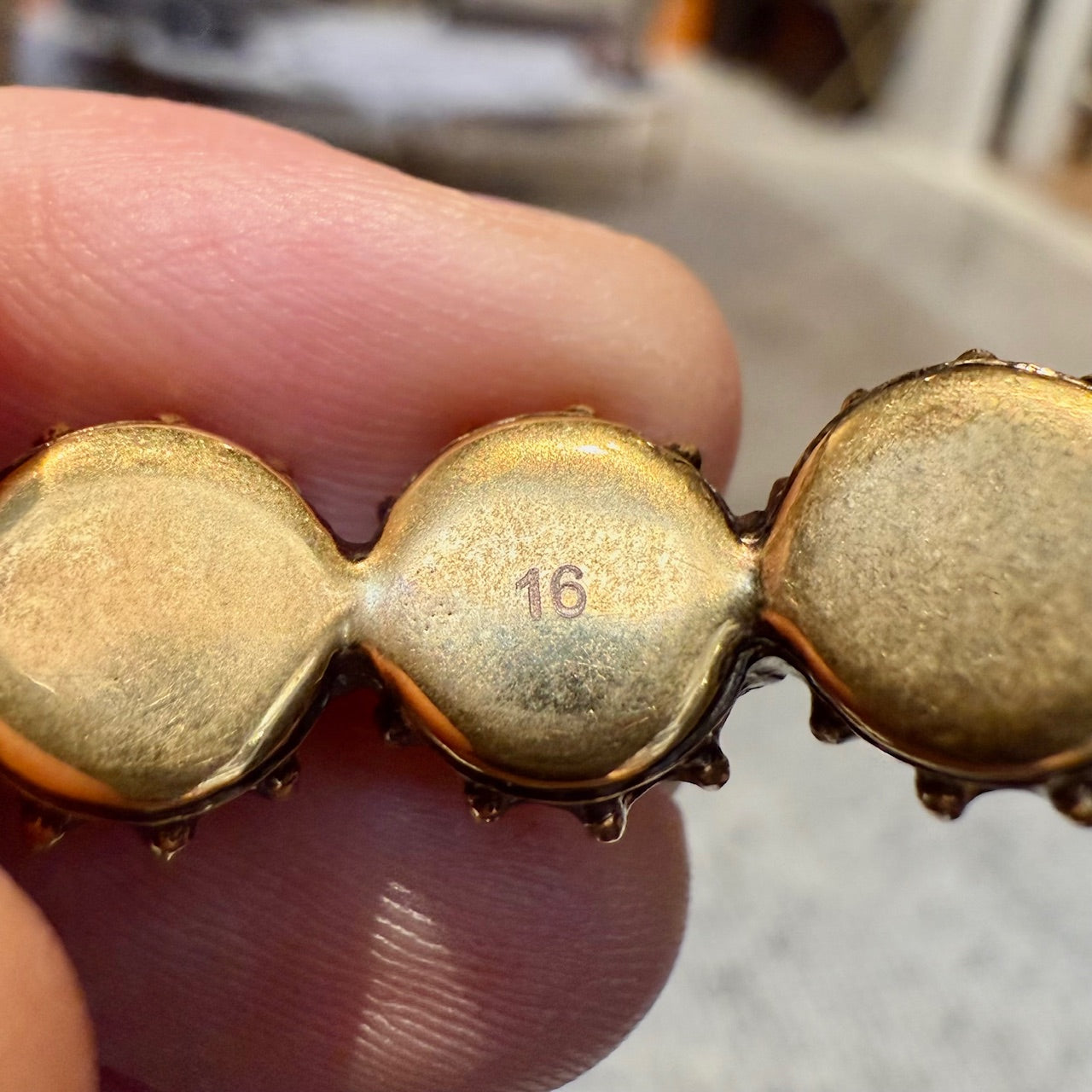 CONDITION: Pre-owned, in very good condition. Minimal signs of wear consistent with gentle use. Light surface wear and patina at metal. Stones and prong settings are intact. No missing stones, no significant imperfection. Please refer to the pictures and measurements. Feel free to inquire for additional information prior to purchase.