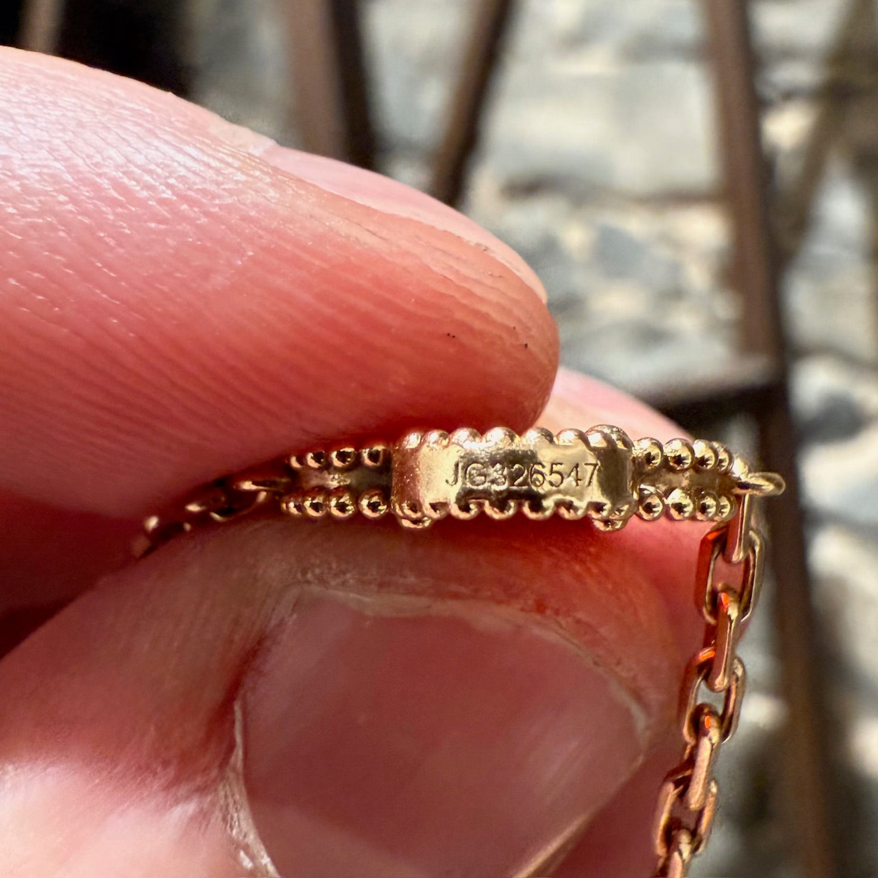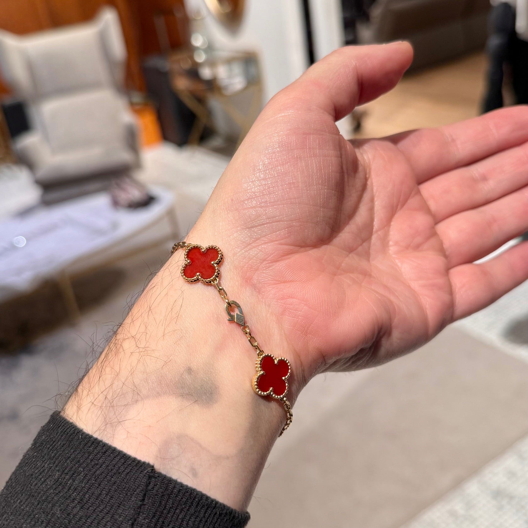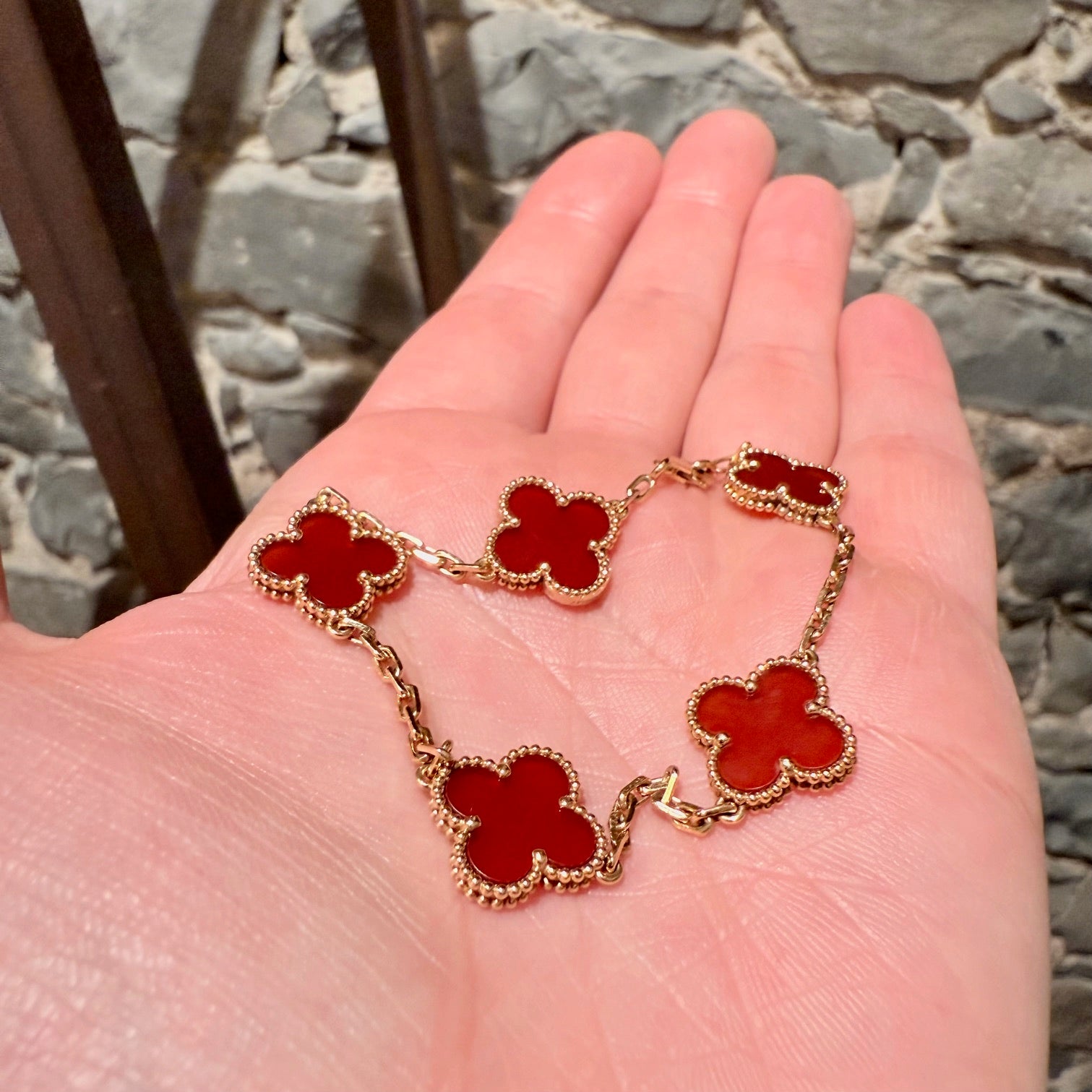 CONDITION: Pre-owned, in very good condition. Light hairline scratches consistent with gentle use. No visible defects on the carnelian motifs. “Vintage Alhambra” refers to the model name and does not indicate the age of the piece. Please refer to the pictures and measurements. Feel free to inquire for additional information prior to purchase.