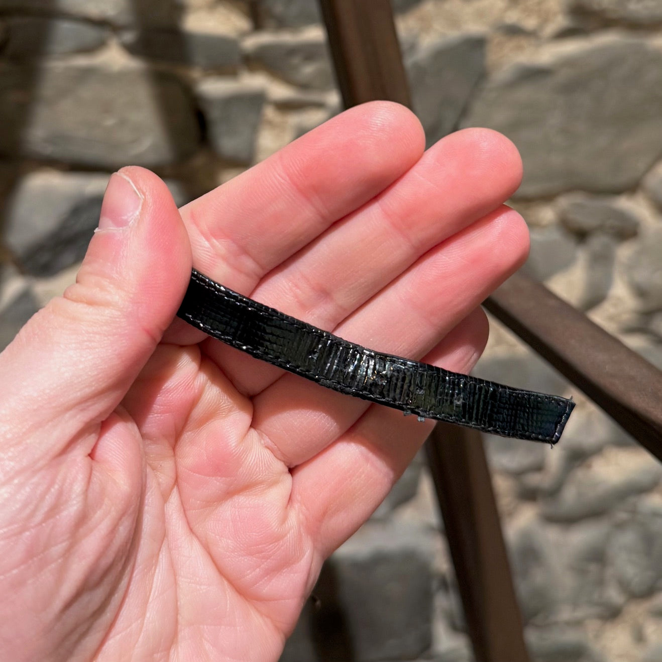 Total height: 3.5" (with strap)MATERIAL(S): Leather, fantasy pearl.