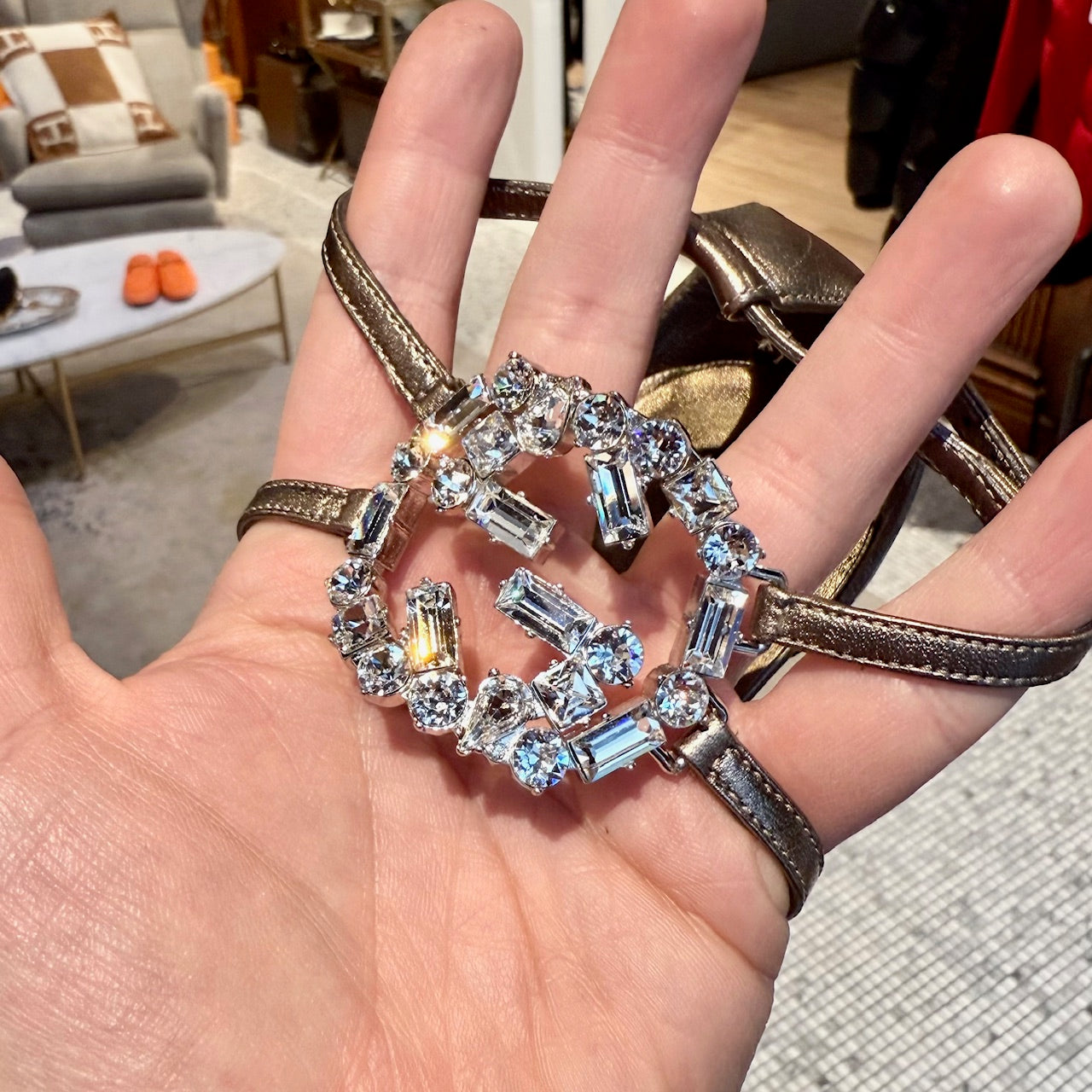 Total height: 6.5"MATERIAL(S): Leather, crystal.