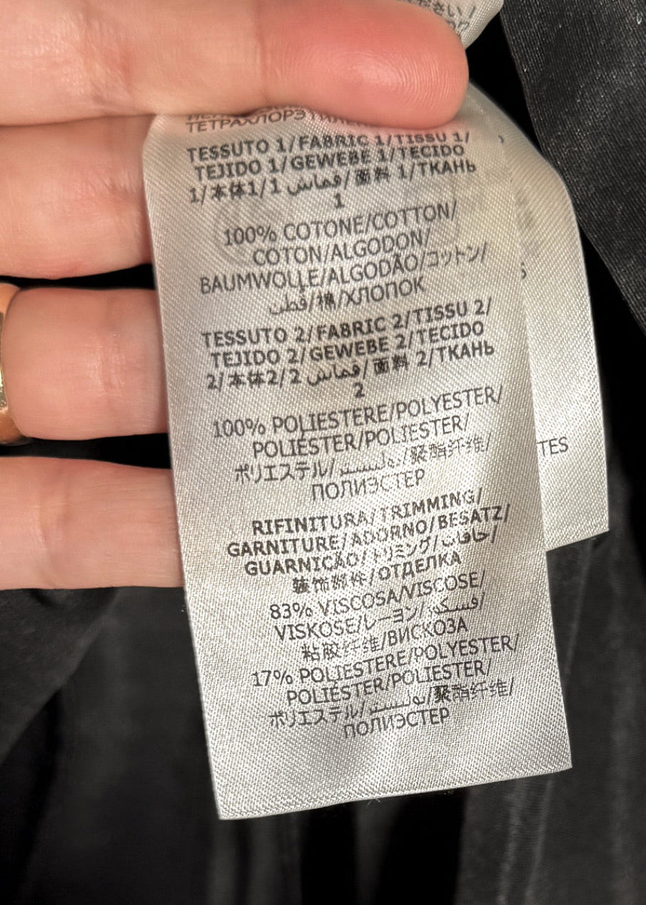 Embroidery: 100% PolyesterCARE: Dry clean only in tetrachloroethene or hydrocarbons, mild process.