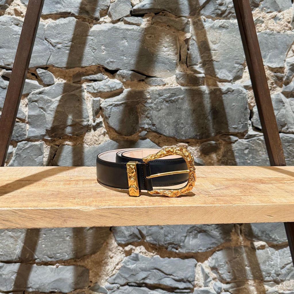 Ceinture Saint Laurent Cassandre Vadim en cuir noir et logo YSL
