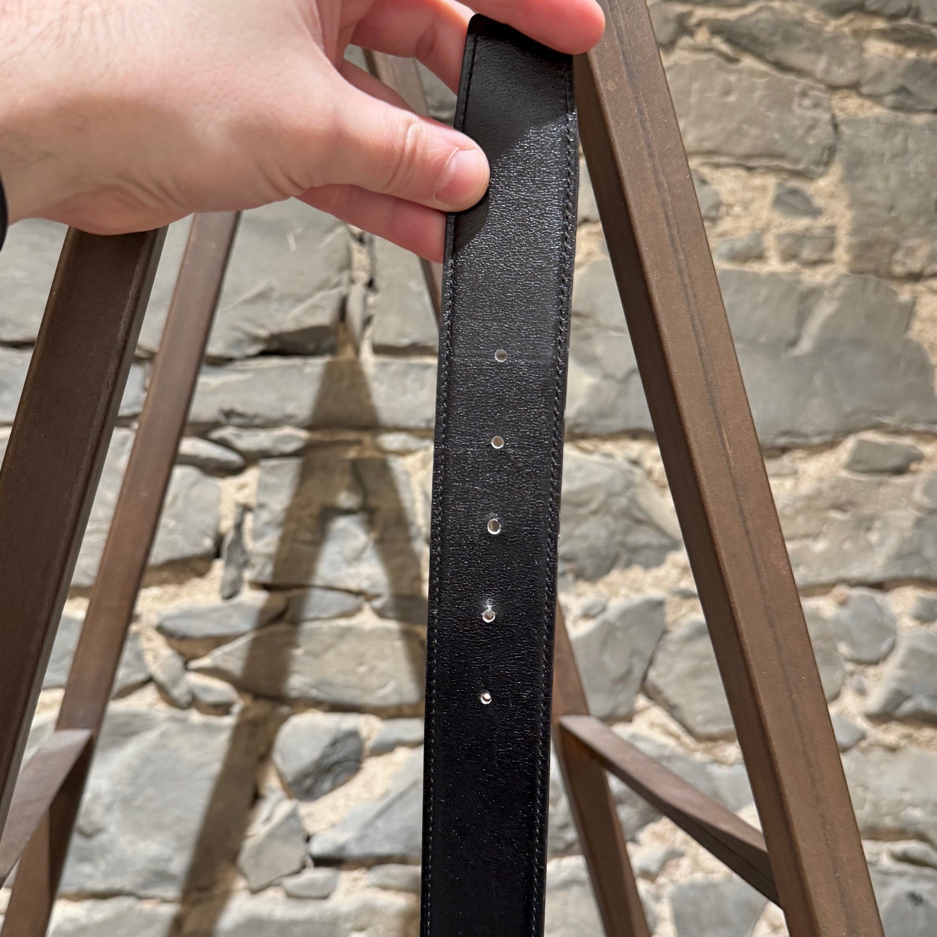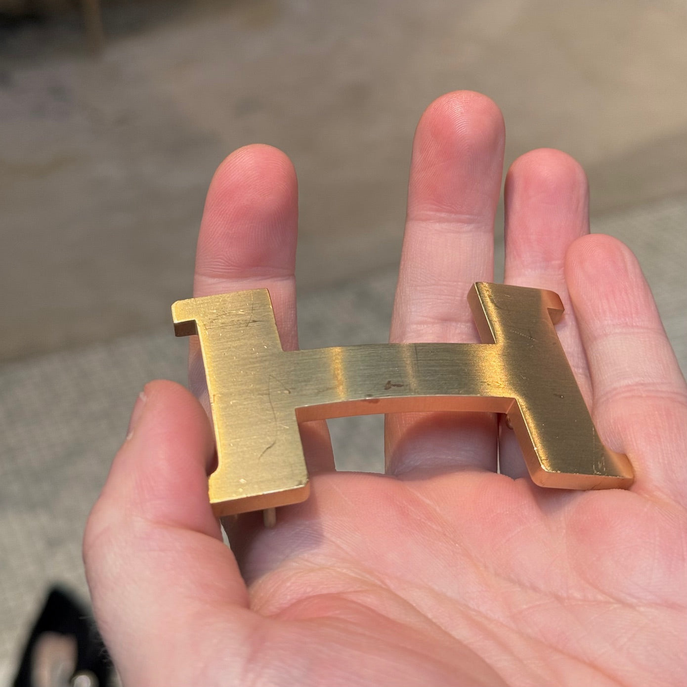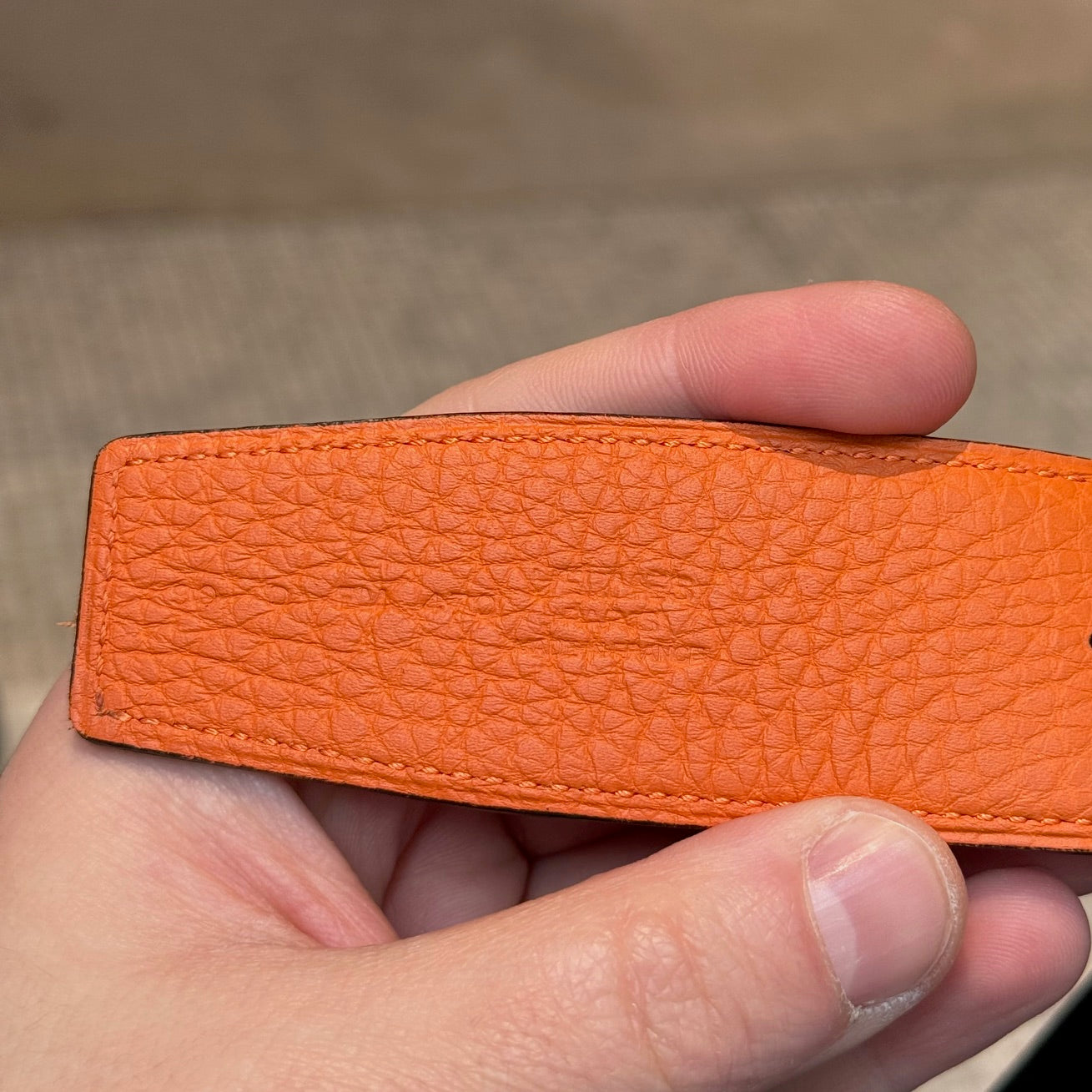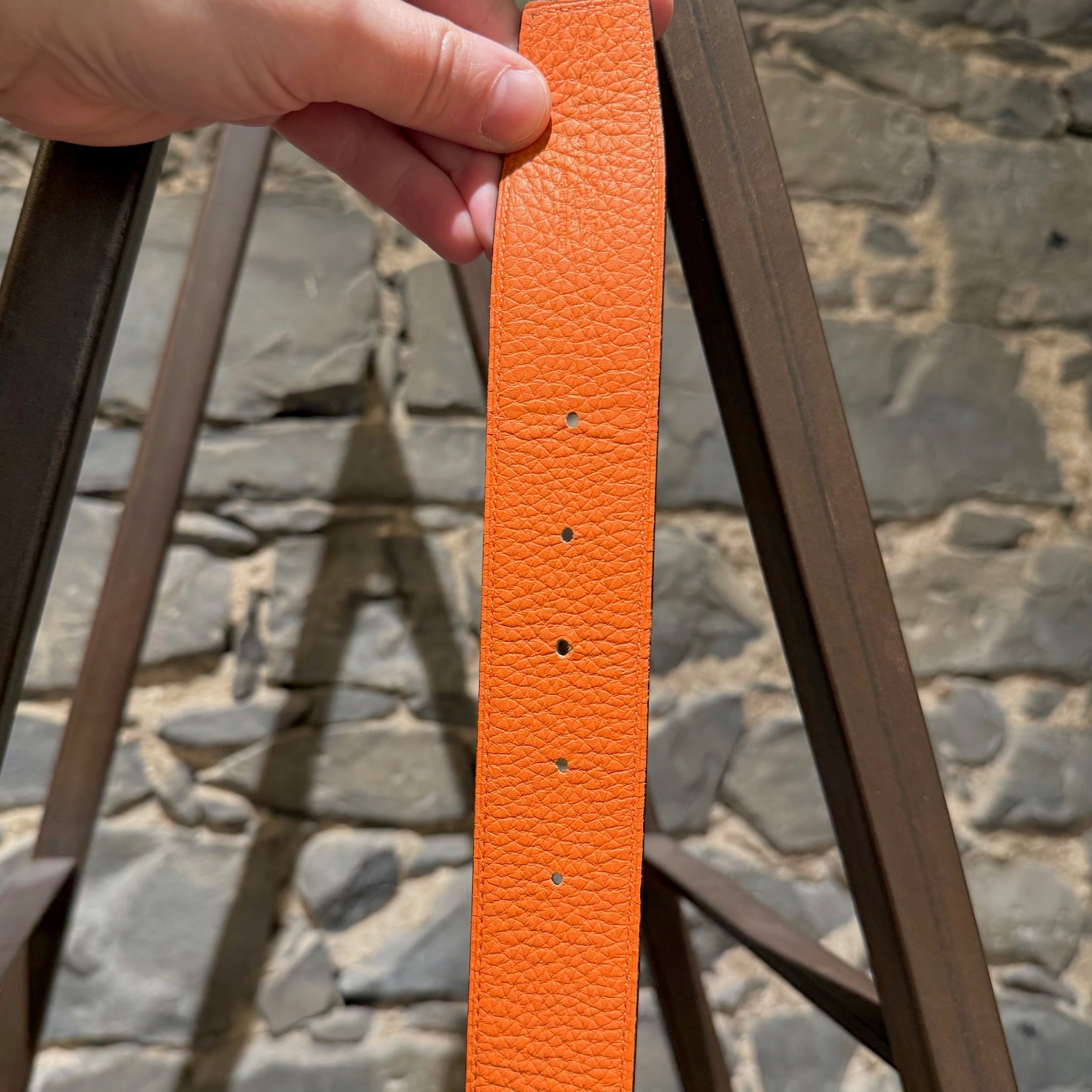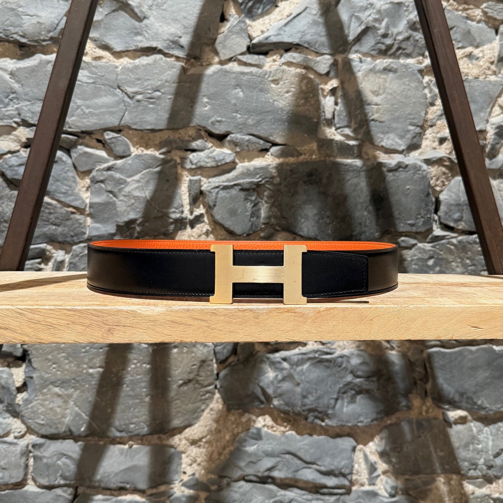 CONDITION: Article d'occasion, en bon état. Rayures visibles, éraflures et légère ternissure sur la boucle H. Le cuir reste bien conservé des deux côtés. Légère usure sur les bords et usure mineure autour de certains trous de ceinture. Veuillez vous référer aux photos et aux mesures. N'hésitez pas à demander des informations supplémentaires avant l'achat.