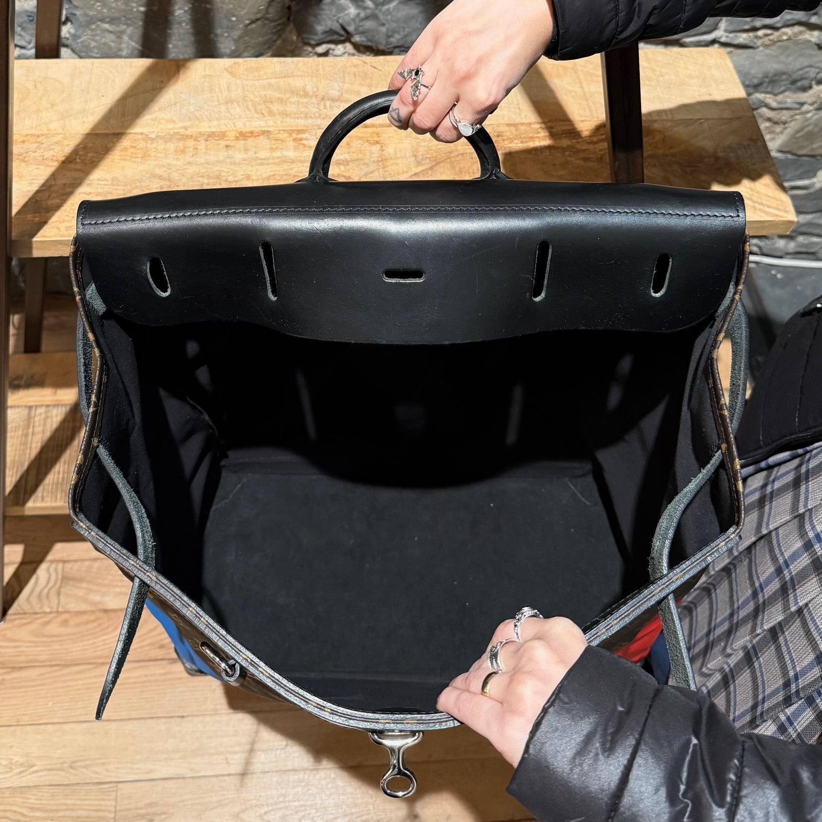 CONDITION : Article d’occasion, en bonne condition. La toile présente de légers plis naturels avec des marques et éraflures de surface compatibles avec une utilisation modérée. Le cuir présente des éraflures visibles et les coins ainsi que le fond montrent de légers frottements et marques. La quincaillerie présente de fines micro-rayures. L’intérieur est propre avec de légers signes d’usure.