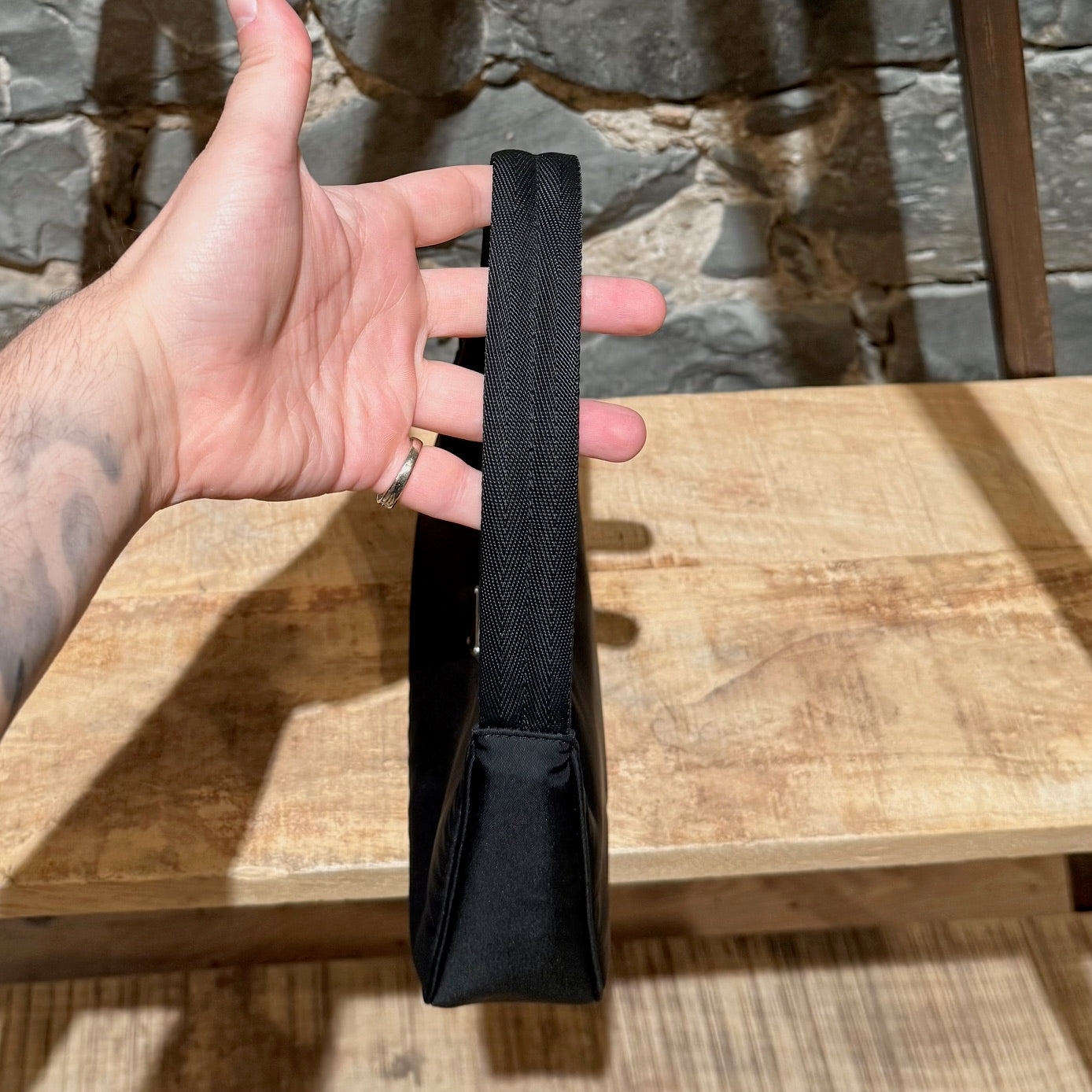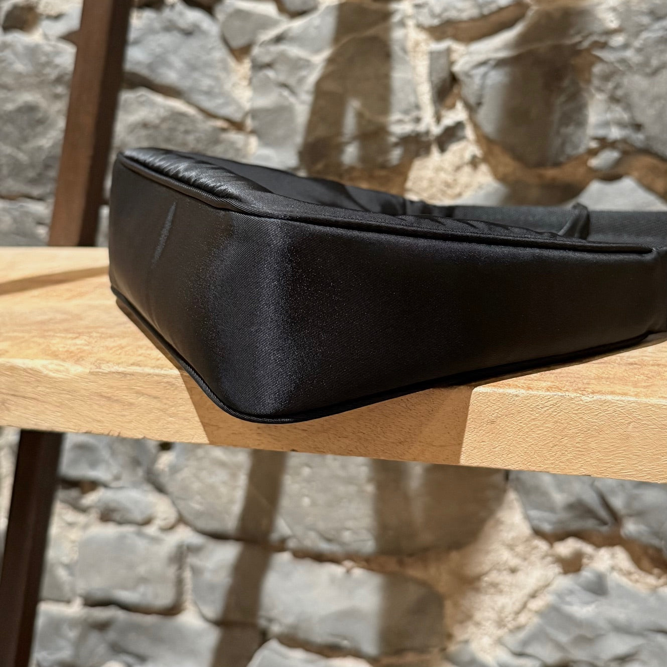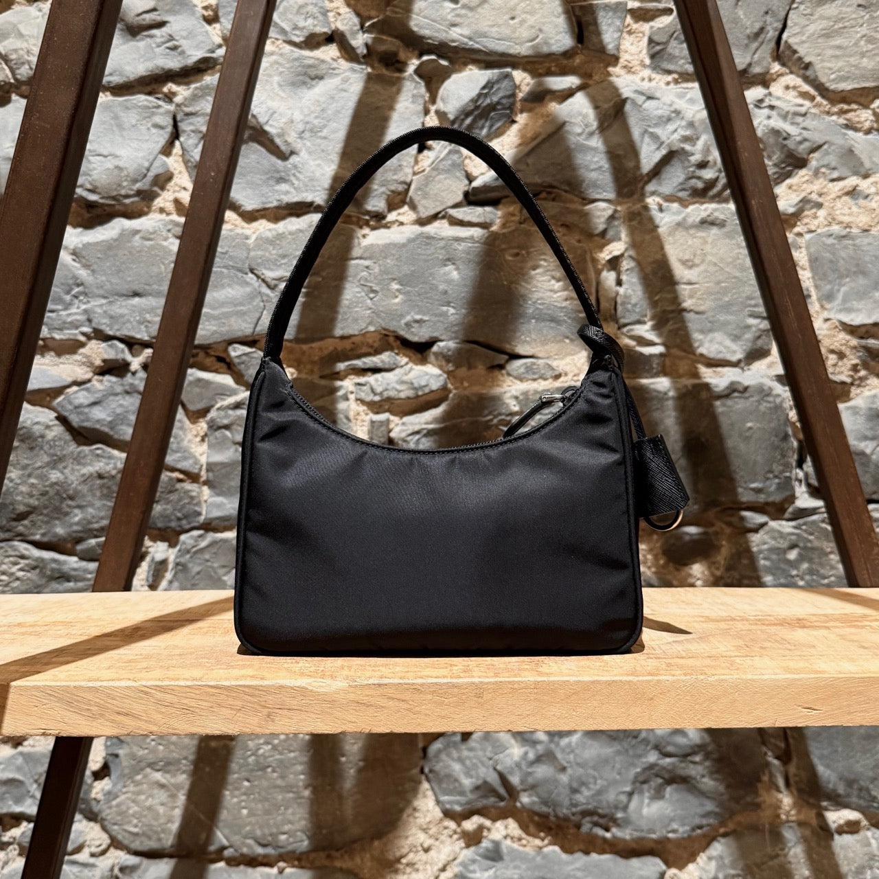 Sac Prada Réédition 2000 en nylon Tessuto noir. Sac bandoulière compact en nylon Tessuto noir avec accessoires en cuir Saffiano ton sur ton. Plaque logo Prada triangulaire émaillée sur le devant. Poignée en ruban tissé. Fermeture zippée sur le dessus avec détails argentés. Intérieur doublé en tissu jacquard signature Prada et doté d'une poche plaquée. Fabriqué en Italie. Livré avec son porte-clés en cuir d'origine.
