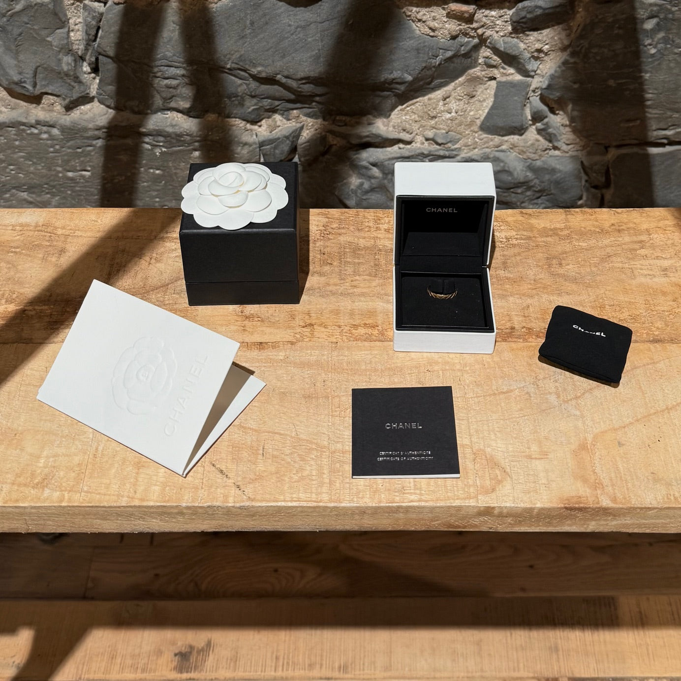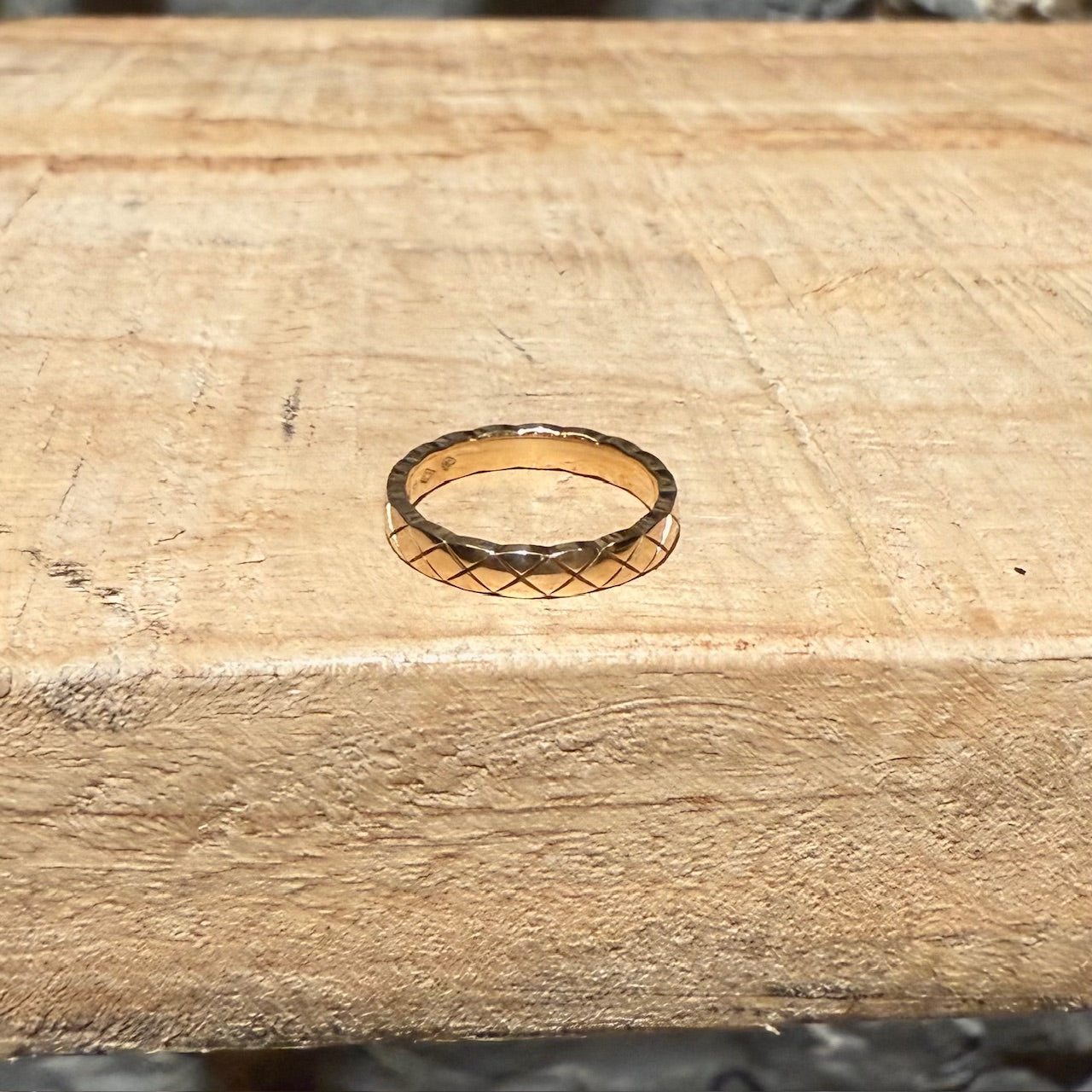 Design iconique à motif matelassé. Bords festonnés. Or jaune 18k. Version fine. Fait en France. Livrée avec la boîte d’origine, le certificat d’authenticité et la facture d’achat.