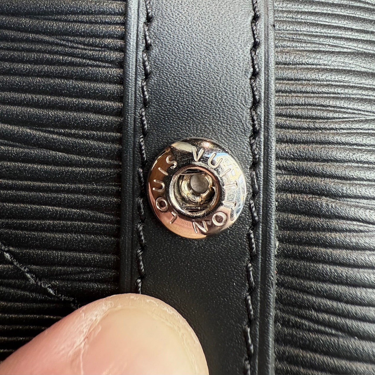 Handle drop: 2.5"MATERIAL(S): Epi leather. Textile straps. Metal hardware.