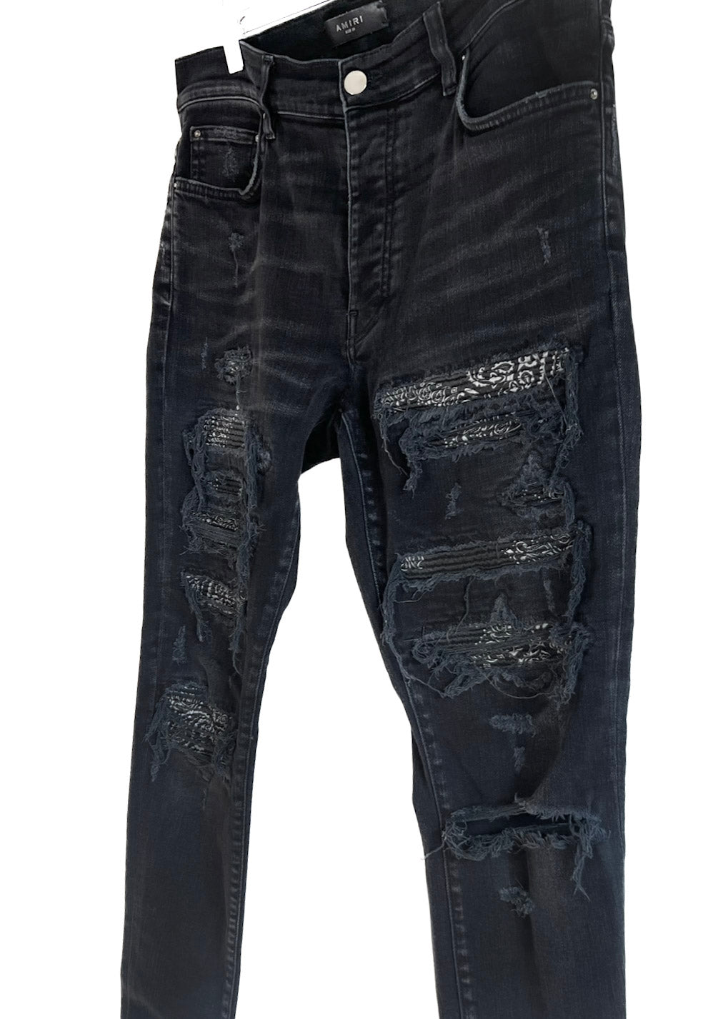 Jean Amiri Bandana MX1 noir délavé effet usé