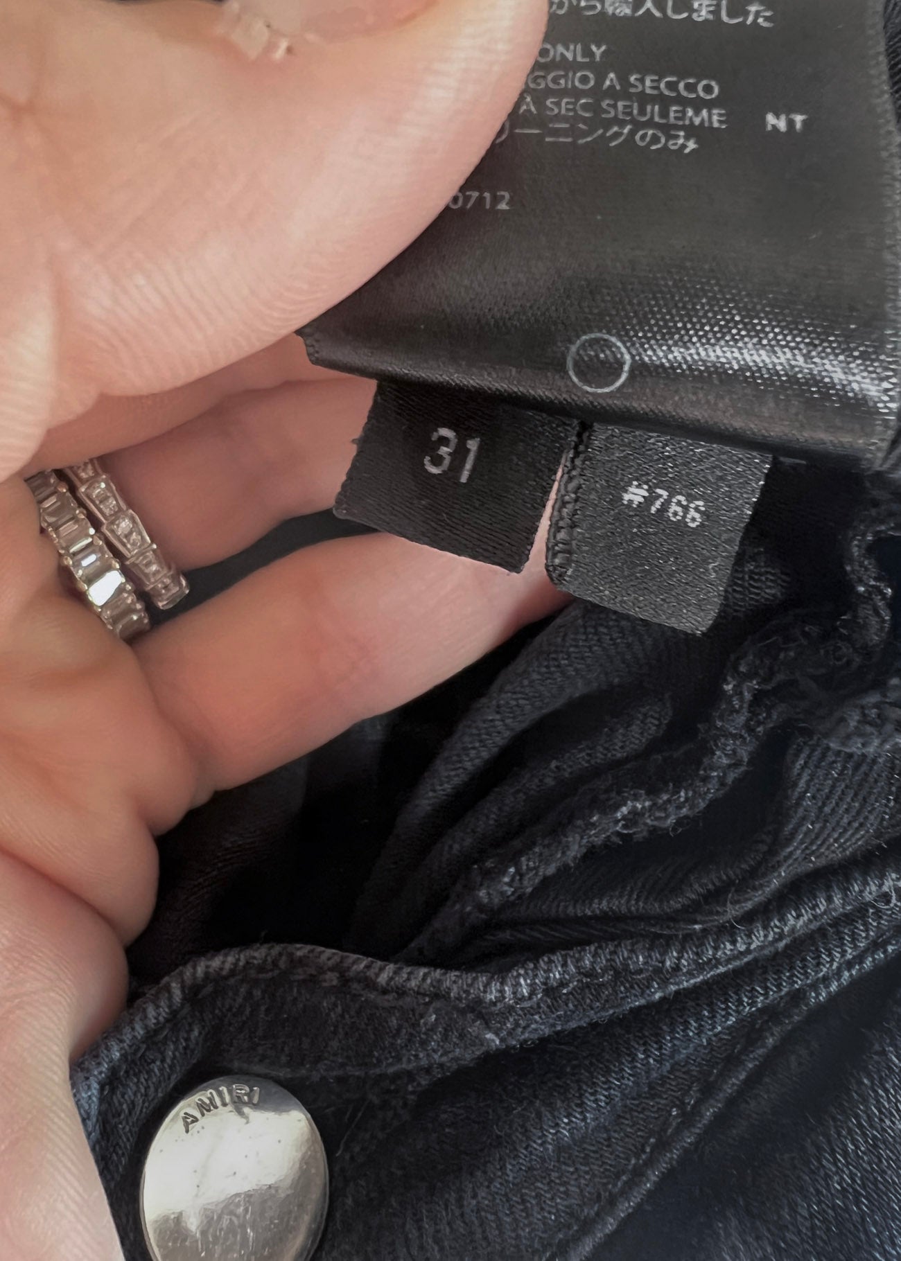 CONDITION: D'occasion, en très bon état. Le tissu est en très bonne condition, et ne montre pas de signe visible d'usure. La longueur du pantalon a été raccourcie. Veuillez noter que l'effet vieilli est une particularité de ce modèle. S'il vous plait se référer aux photos et aux mesures. Veuillez vous renseigner pour plus d'informations.