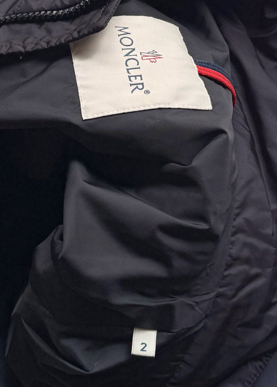 CONDITION : Article d'occasion, en très bonne condition. Légers plis et marques de surface sur le nylon, cohérents avec une utilisation soignée. La tirette zippée triangulaire Moncler présente des signes d’usure modérés dus au nettoyage à sec. Capuche manquante. La quincaillerie et les fermetures à glissière fonctionnent correctement. Aucun défaut visible. Veuillez vous référer aux photos et aux mesures. N’hésitez pas à poser vos questions avant l’achat pour toute information supplémentaire.