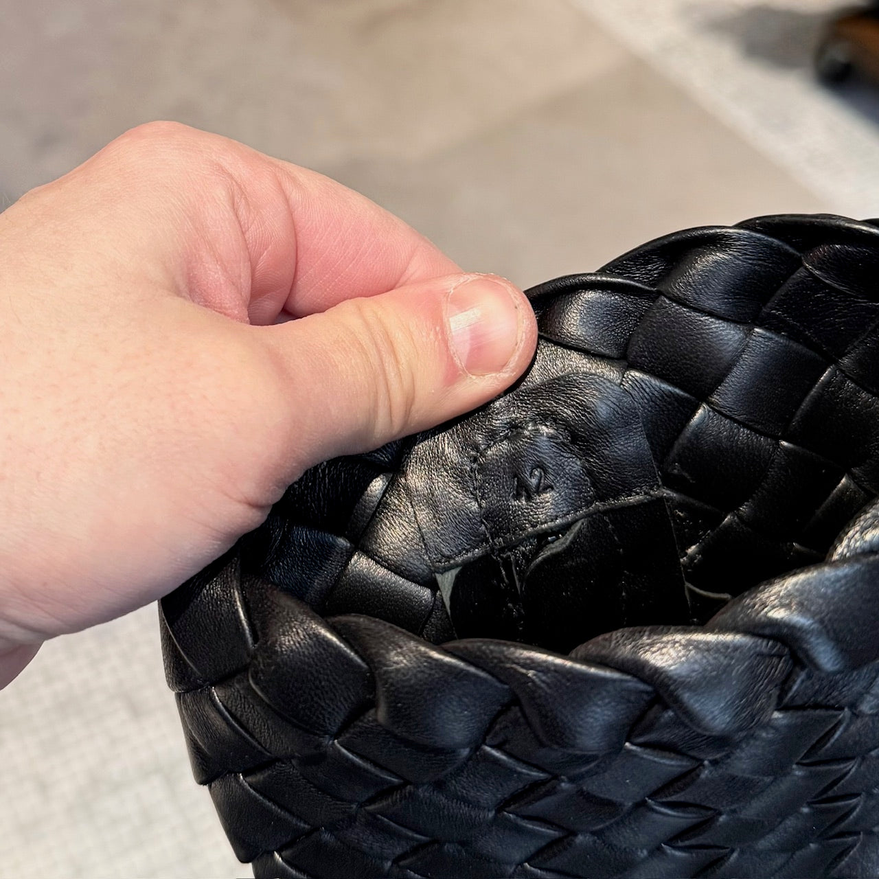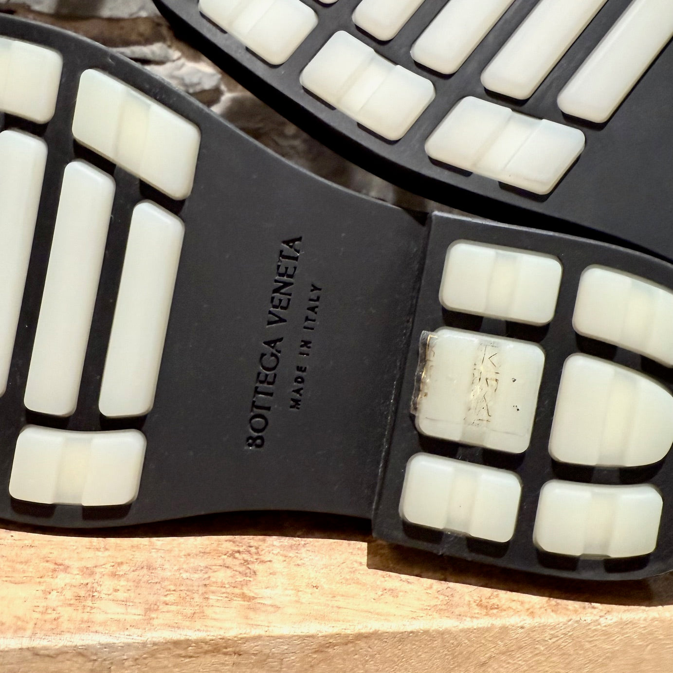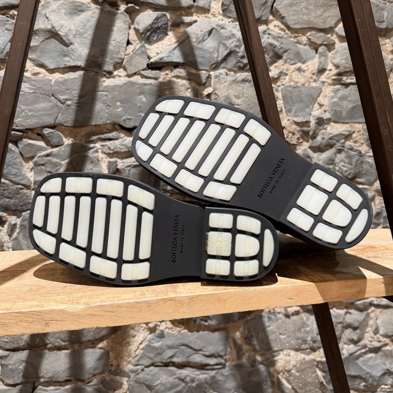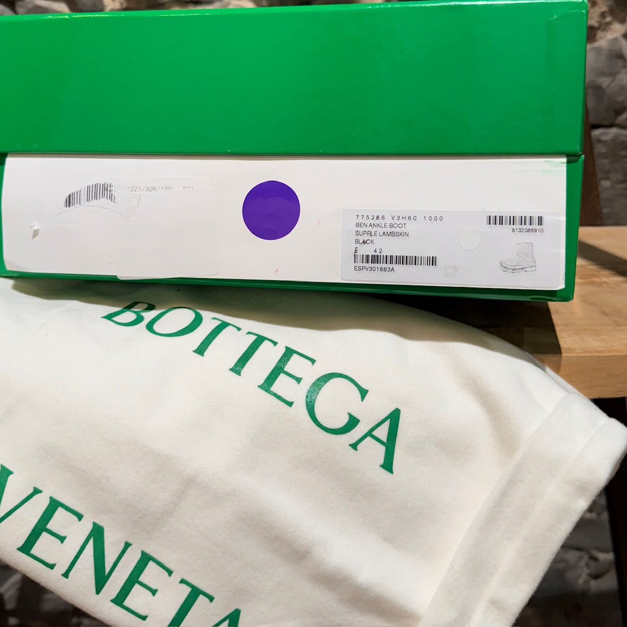 Cuir d’agneau noir souple, entièrement tressés selon le motif intrecciato emblématique, avec bout carré. Semelles épaisses en caoutchouc avec empiècements antidérapants. Fermetures éclair latérales. Semelle intérieure en cuir avec logo Bottega Veneta embossé. Faites en Italie. Livrées avec la boîte d’origine Bottega Veneta et un sac poussière.