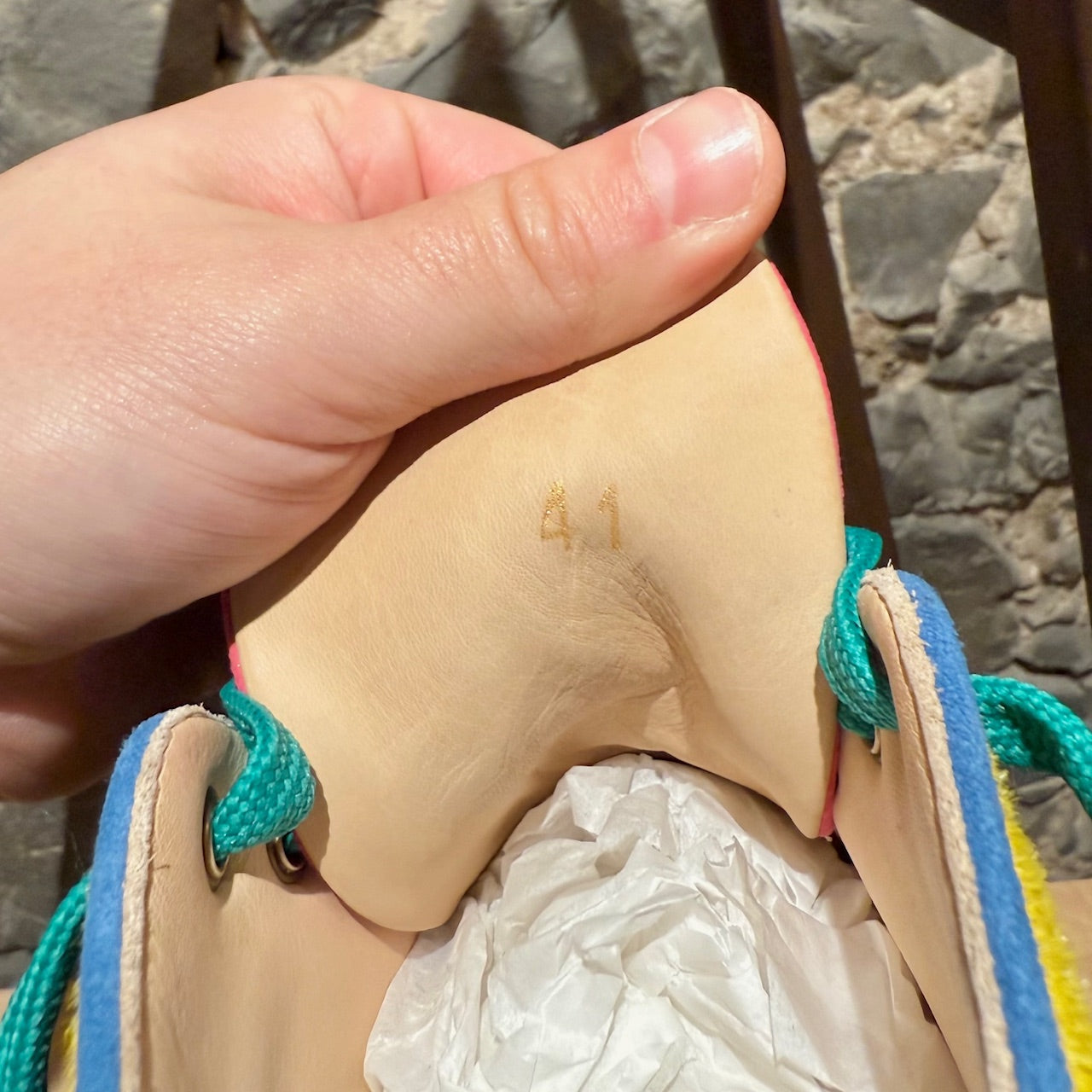 POINTURE : 41 IT – 8 US – 7 UK. Veuillez vous référer aux mesures.