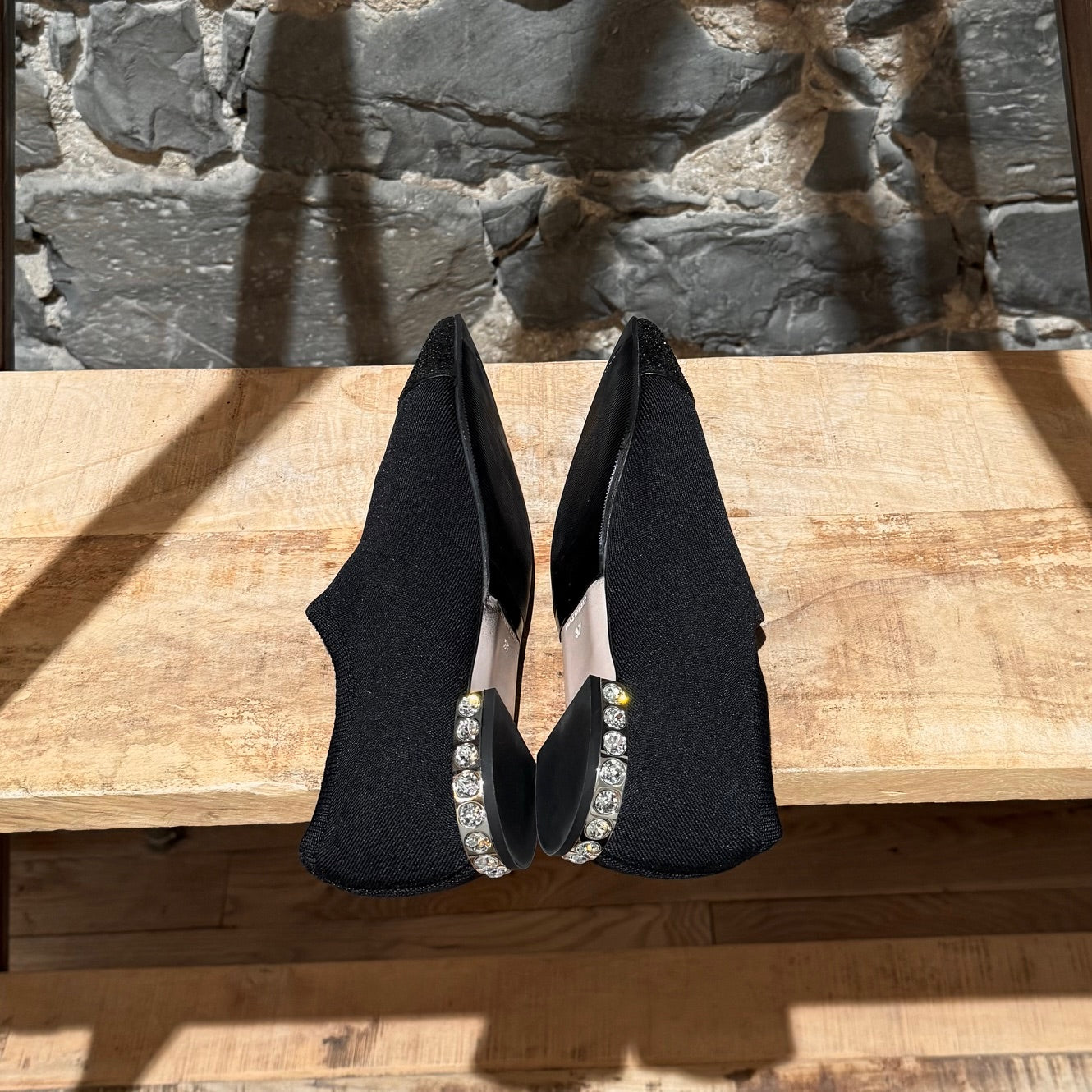 CONDITION : Article d'occasion, en très bon état. Légers signes d’usure compatibles avec une utilisation soignée. Les semelles extérieures ont été modifiées par la propriétaire précédente pour une version en caoutchouc durable, et présentent une légère usure. Tous les cristaux sont présents. Aucun défaut visible. Veuillez consulter les photos et les mesures. N’hésitez pas à nous contacter pour toute information complémentaire avant l’achat.