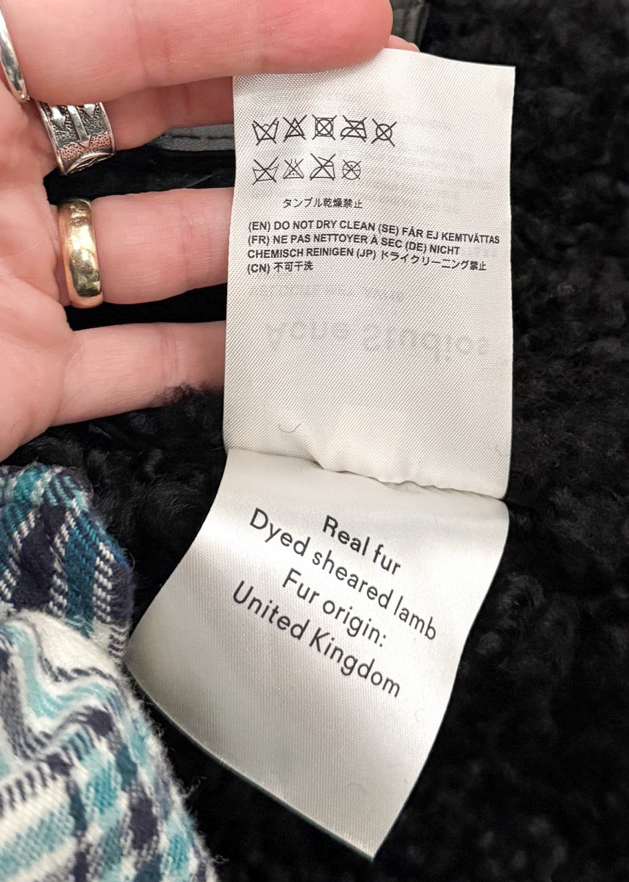Fur origin: United Kingdom.CARE: Do NOT dry clean.
