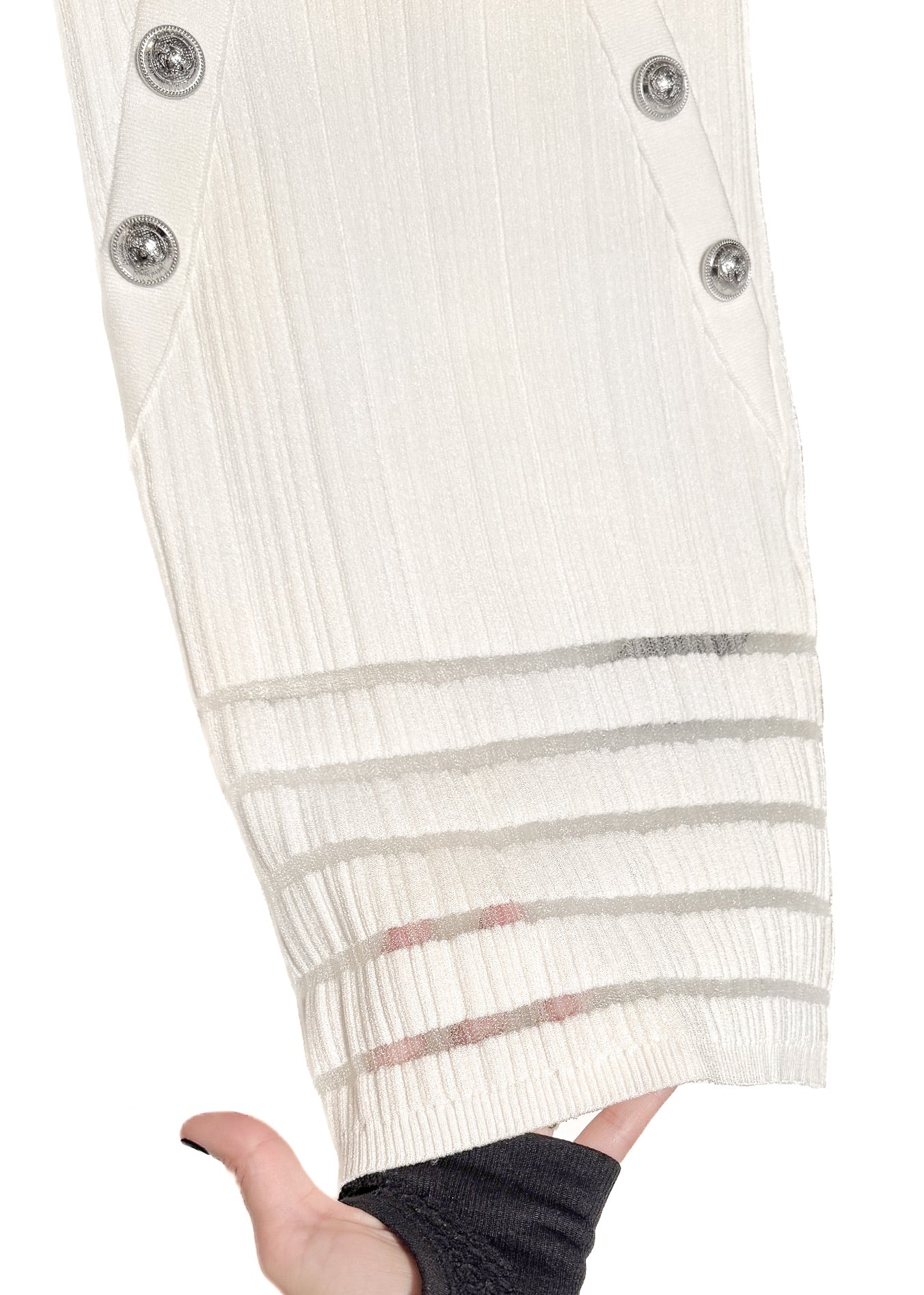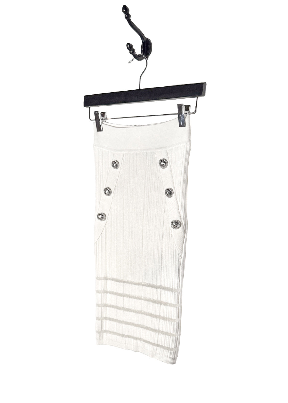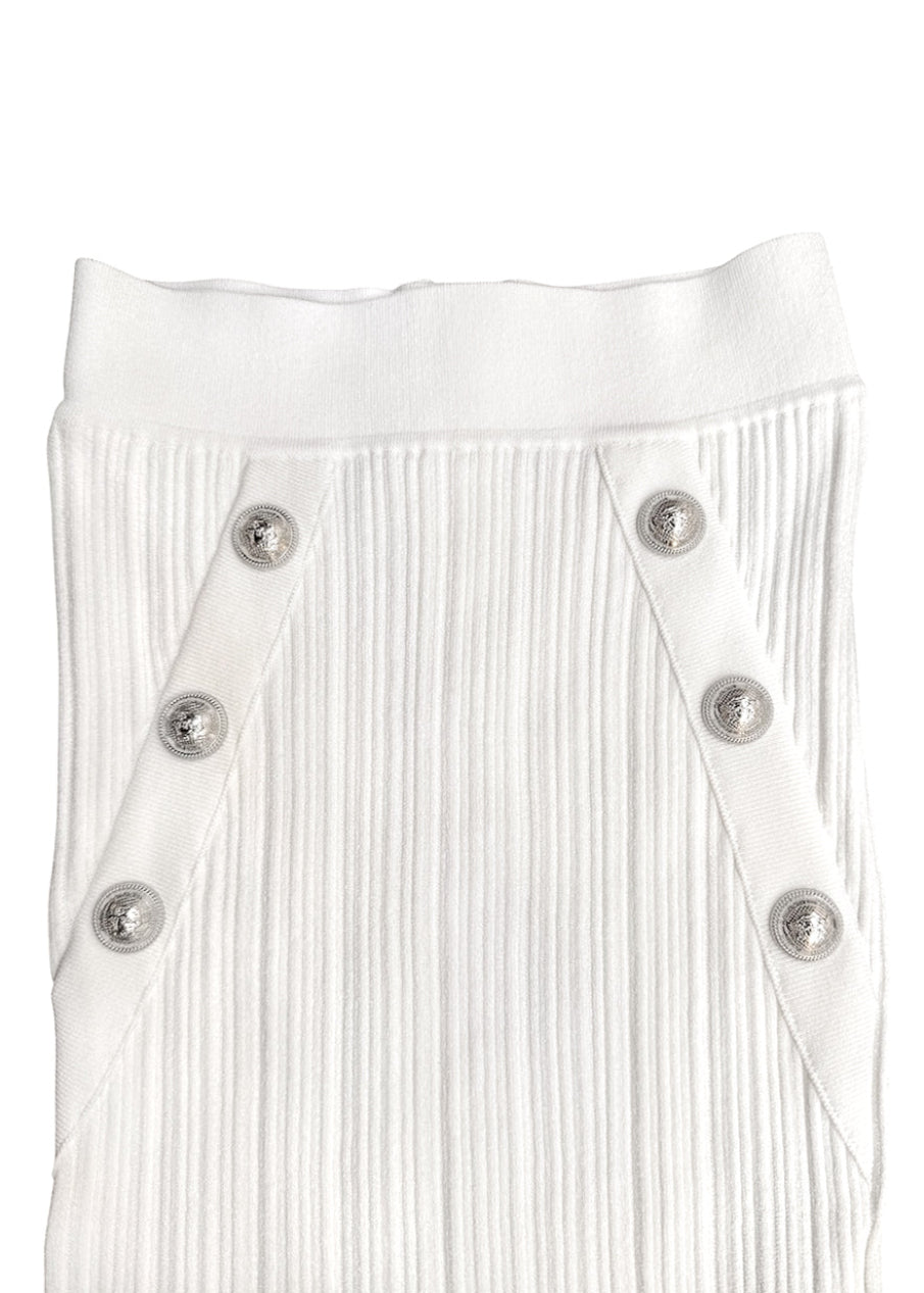 Jupe Balmain blanche côtelée semi-transparente à boutons
