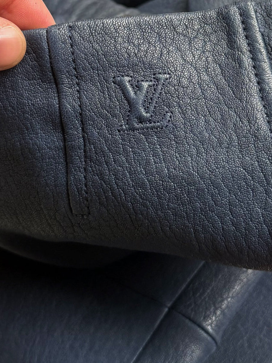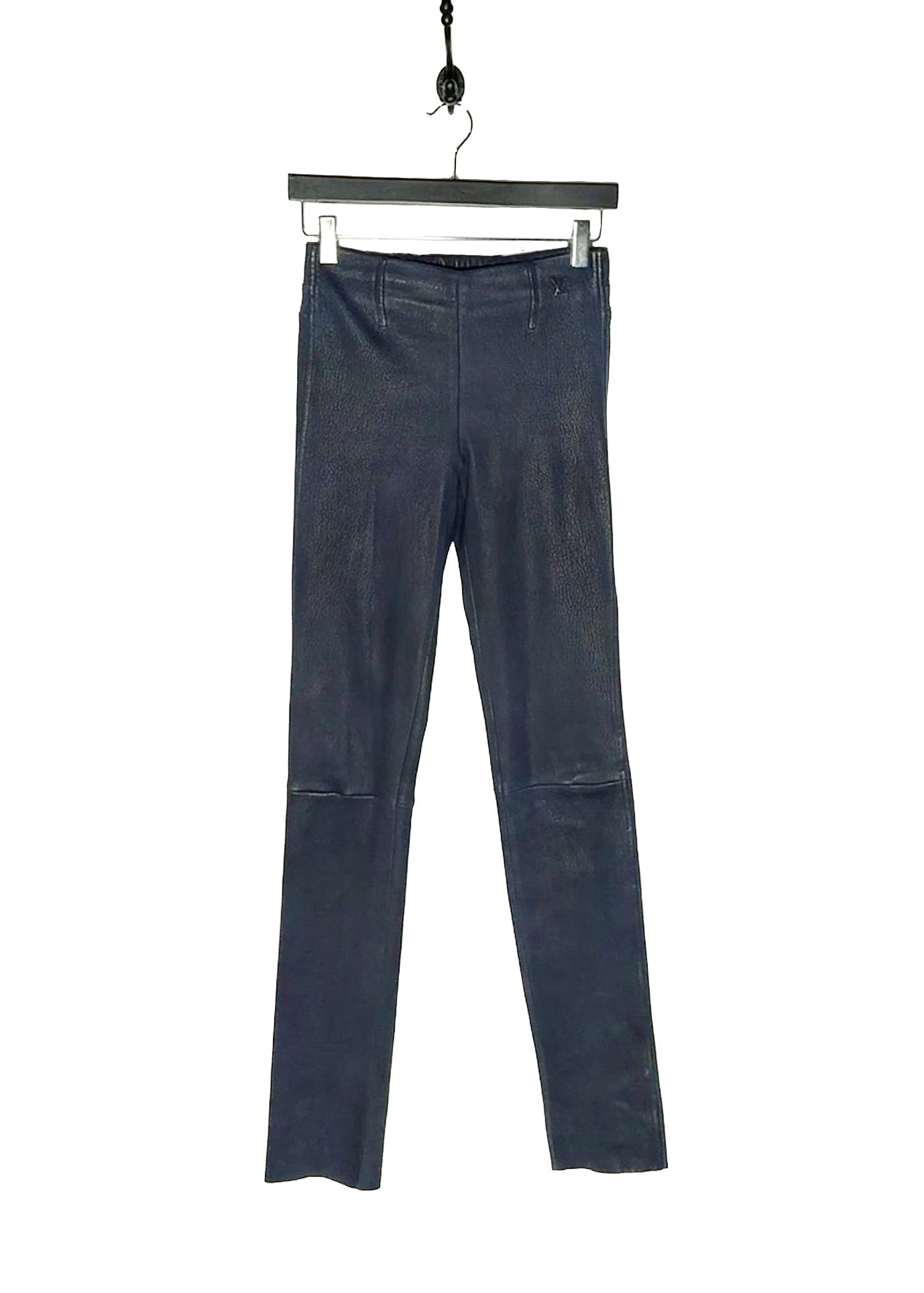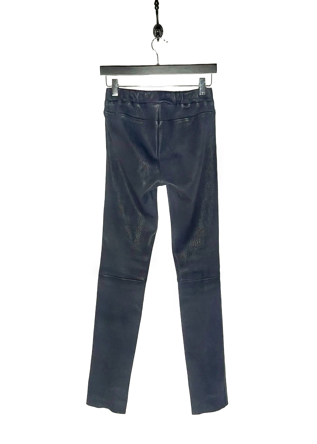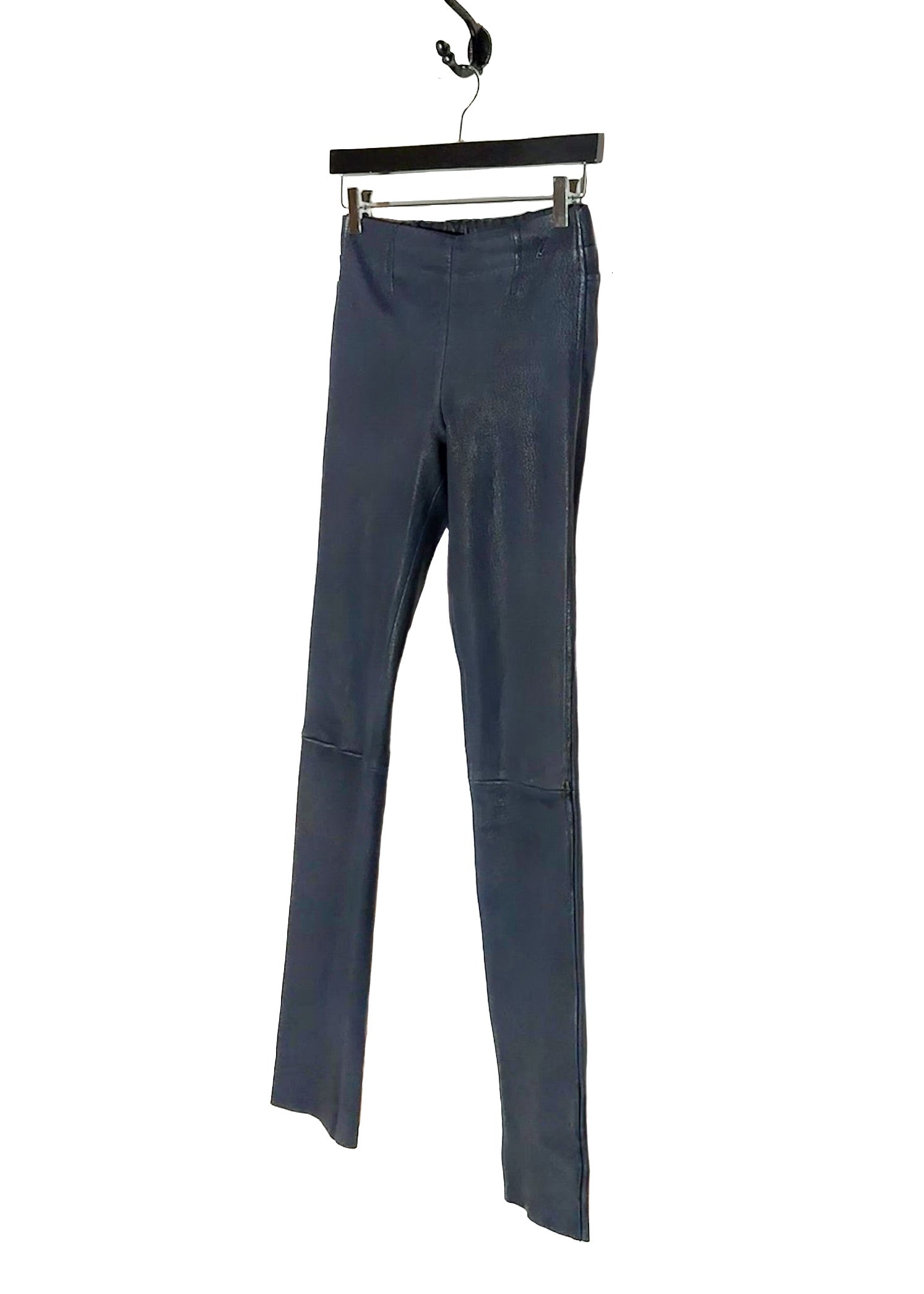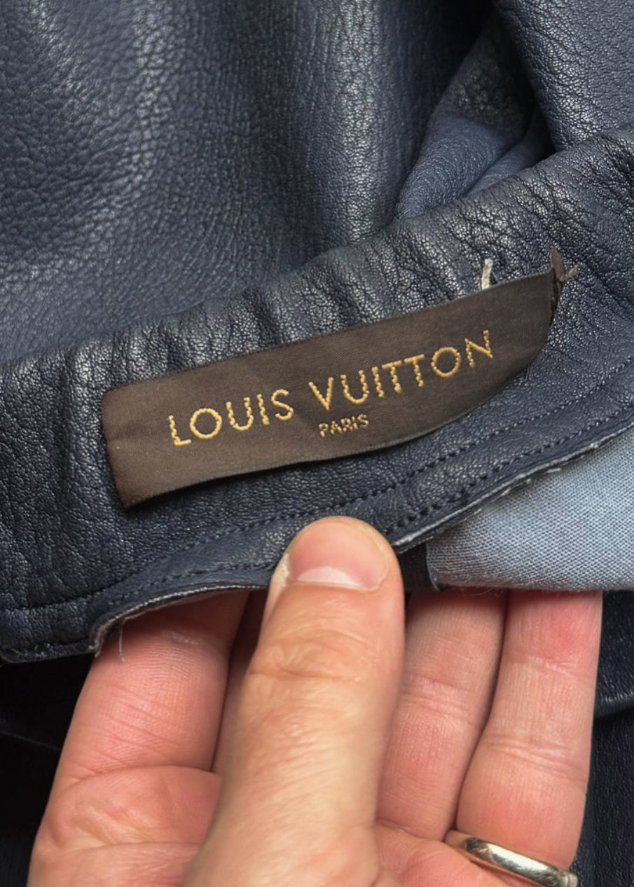 100 % cuir d’agneau bleu marine avec une finition grain naturel lisse et mate. Taille élastiquée avec logo LV embossé à l’avant. Construction à panneaux avec coutures aux genoux. Coupe ajustée extensible avec ourlet droit non fini.