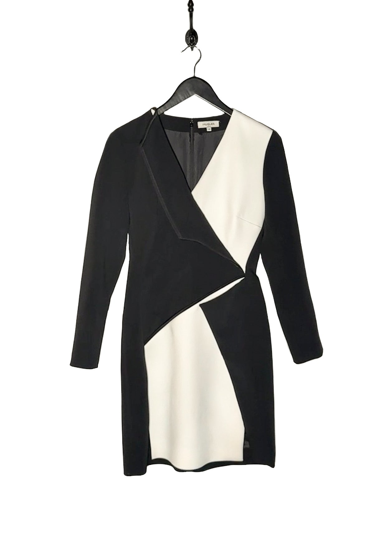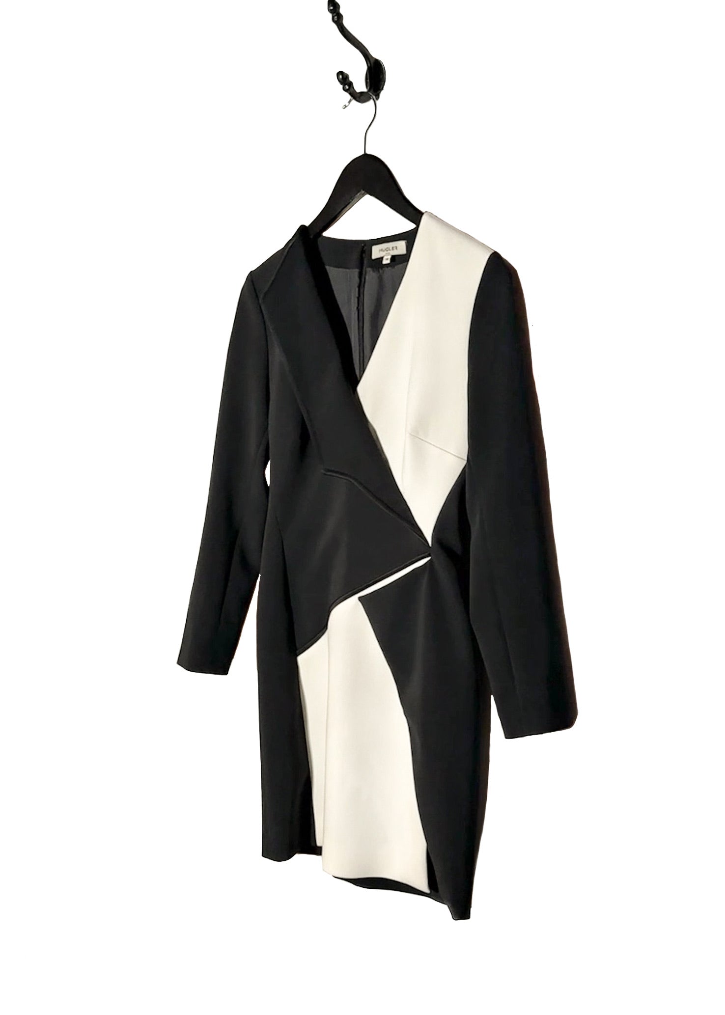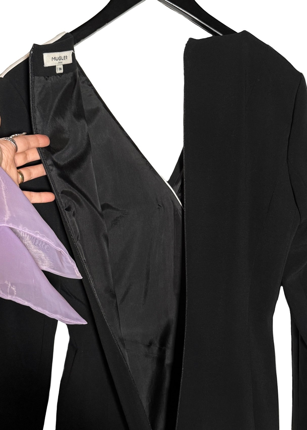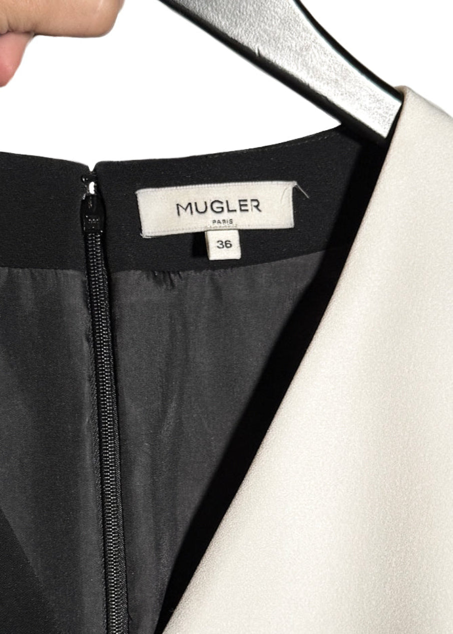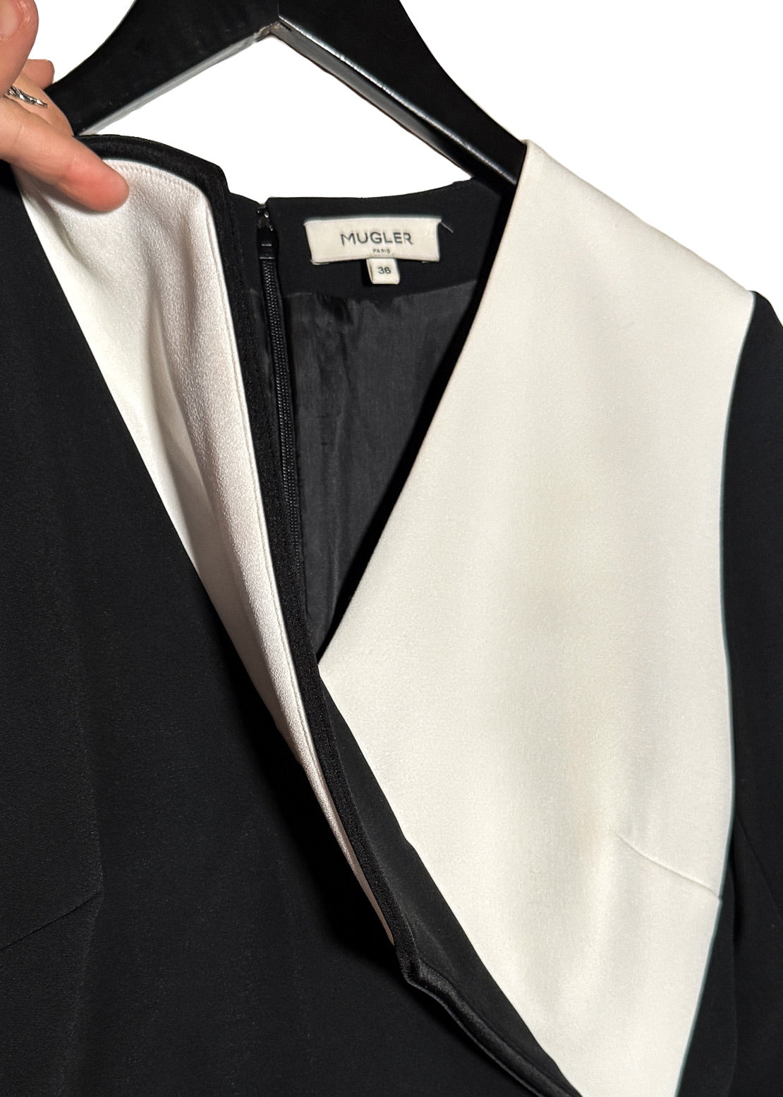 Robe courte Mugler en crêpe noir et blanc à empiècements contrastants