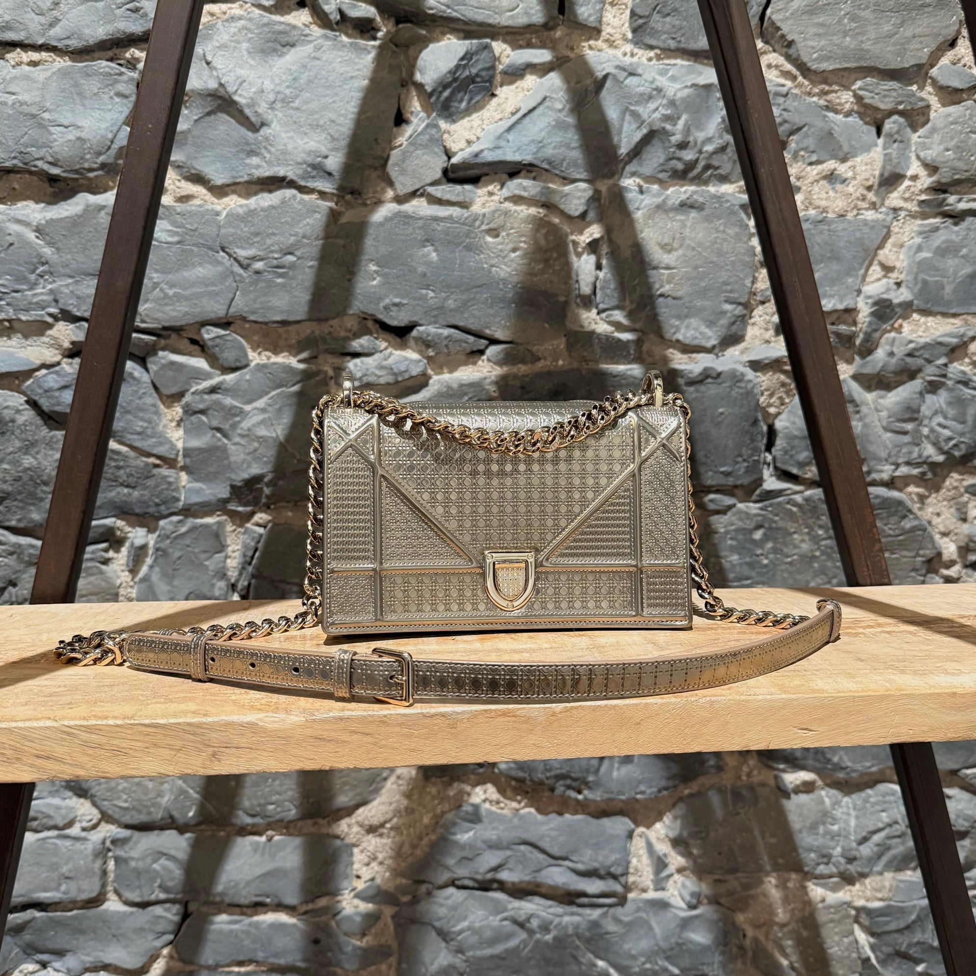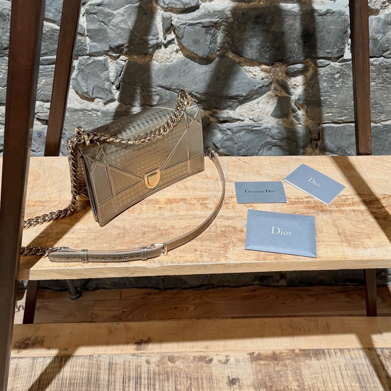 Sac à chaîne Dior Diorama 2018 petit microcannage or