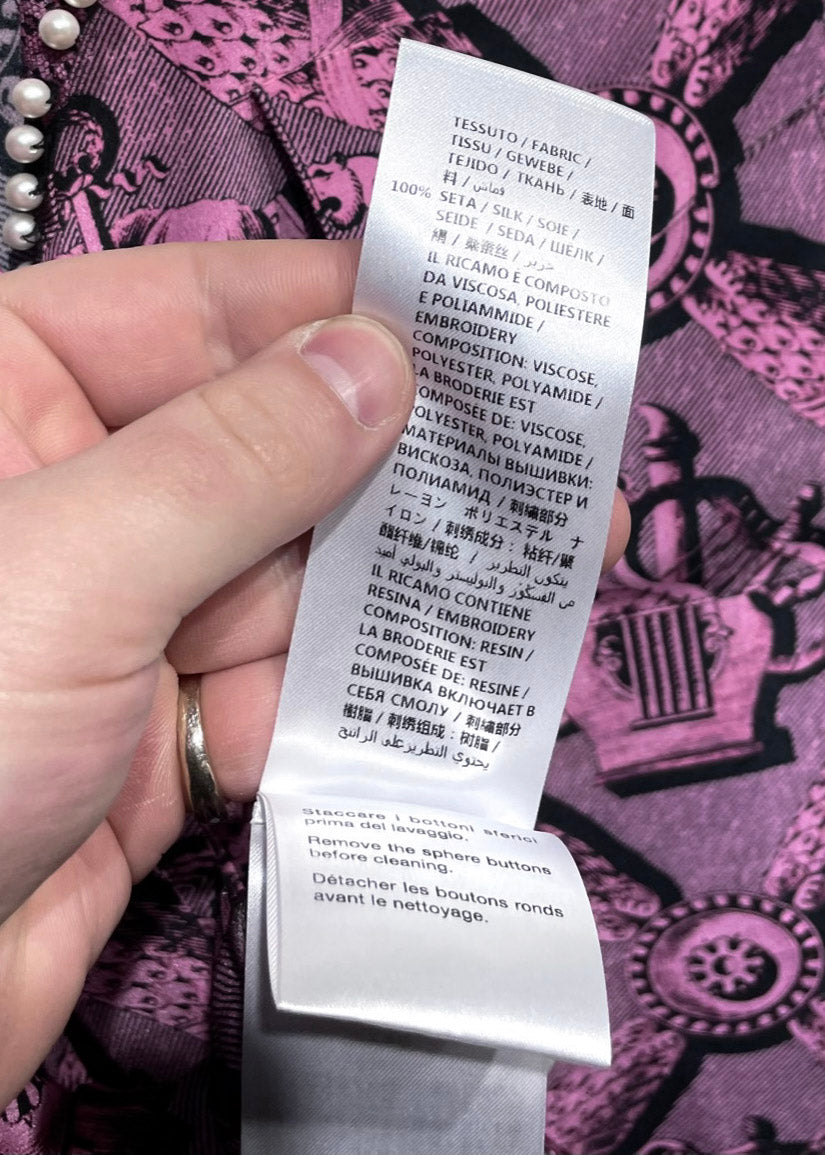 MATERIAL(S): 100% silk.CARE: Dry clean only.