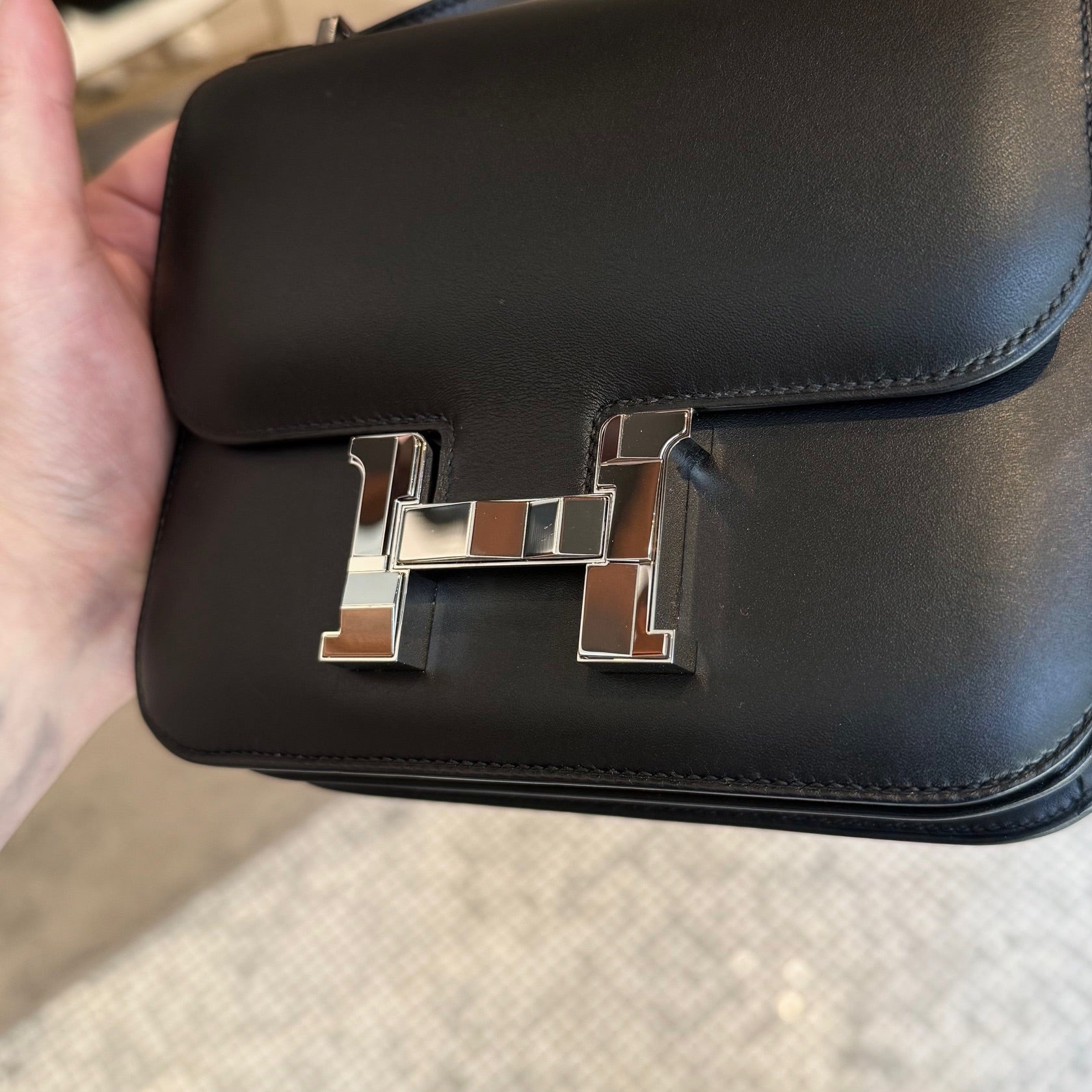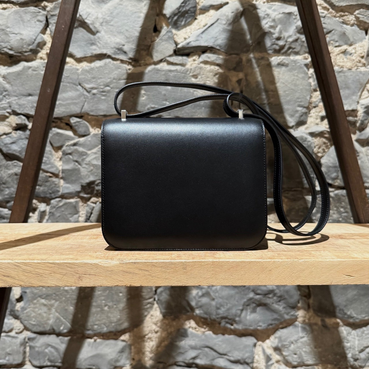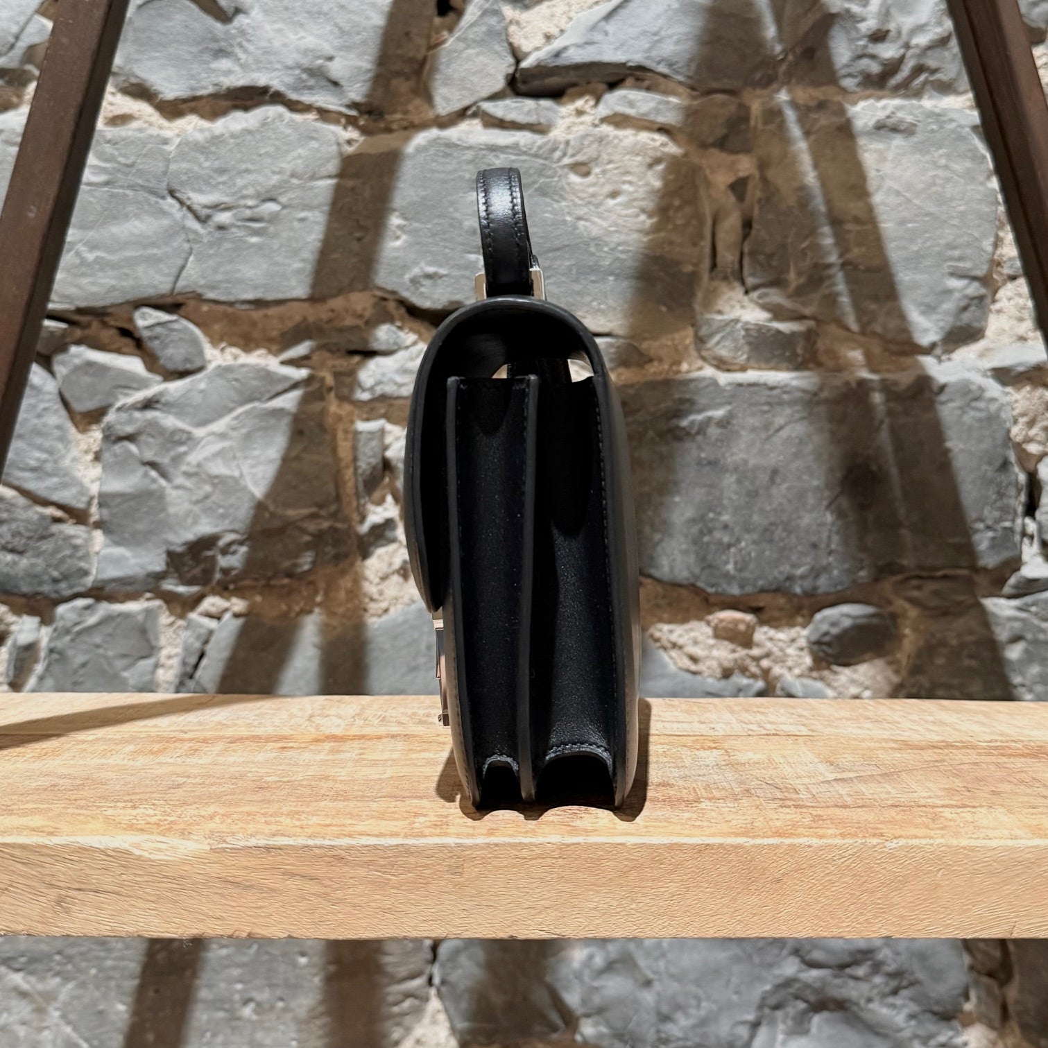 Limited edition from 2021 - Z stamp. Crafted in black Veau Monsieur leather with a structured silhouette. Palladium-plated Studio Disco H clasp featuring mirrored 3D geometric inlays. Long leather sliding strap for shoulder or crossbody wear. Two (2) interior compartments with central divider and slip pockets. Back panel and side gussets finished in smooth leather with reinforced edges. Made in France. Comes with original Hermès blue interior box, dustbag, felt protector, and purchase receipt.