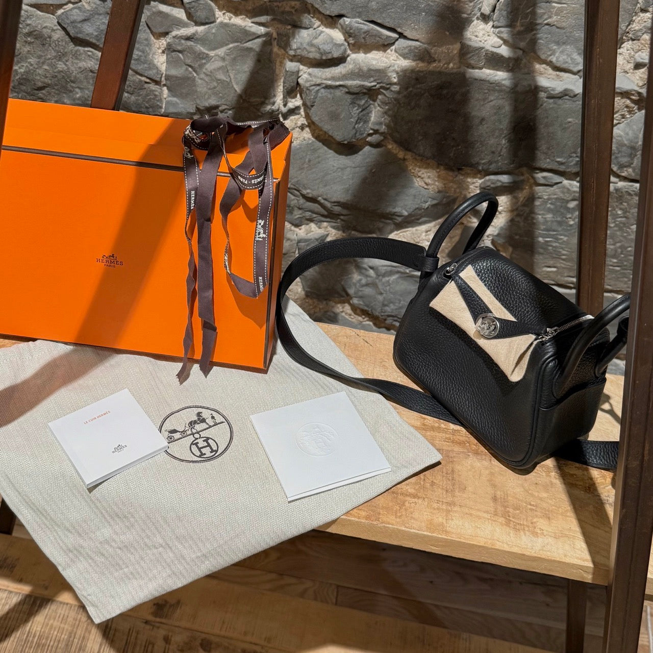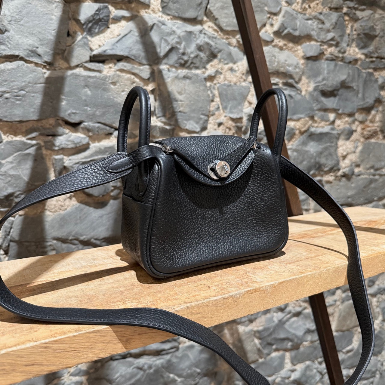 Hermès 2024 Black Taurillon Mini Lindy 20 Bag